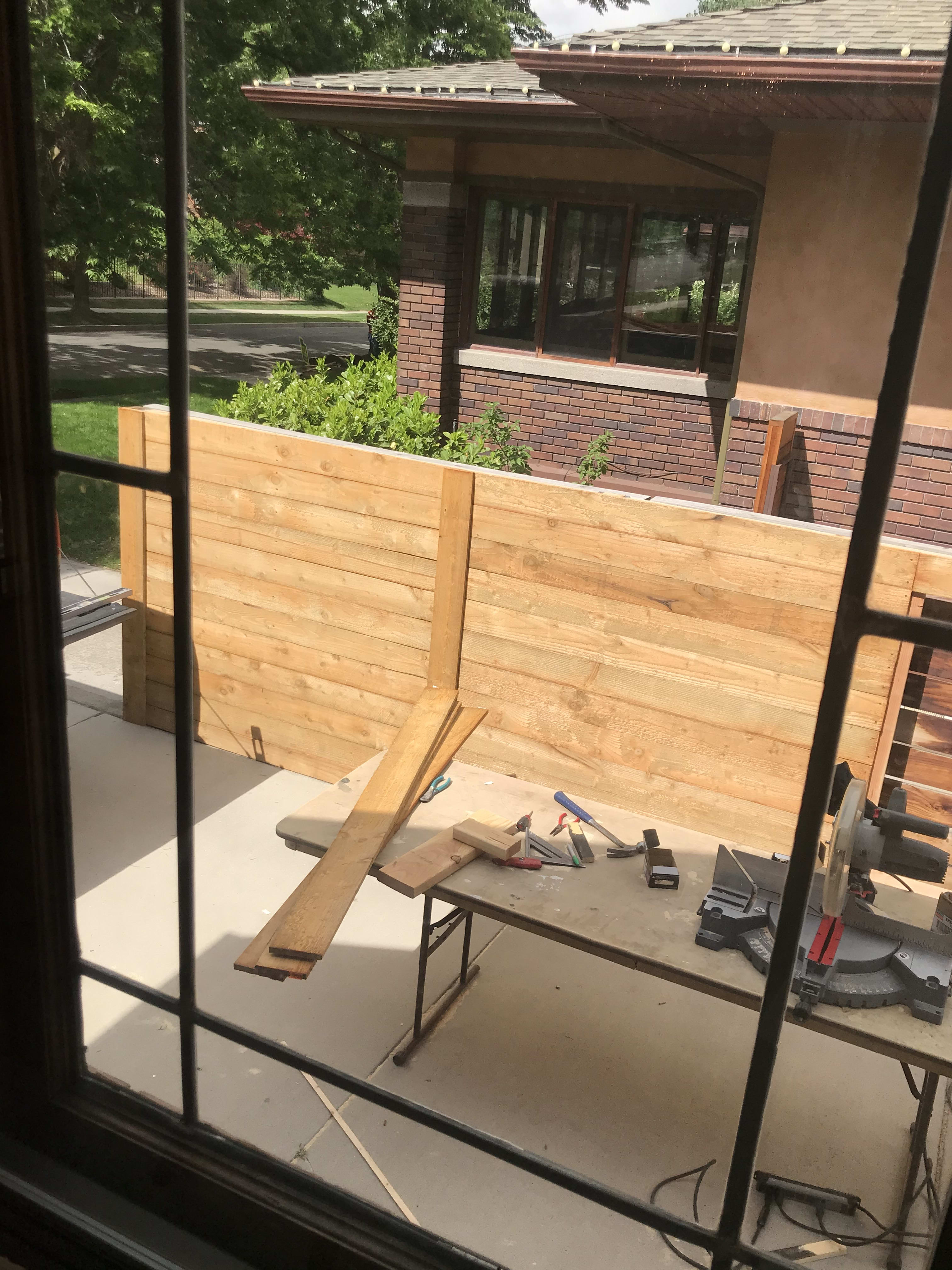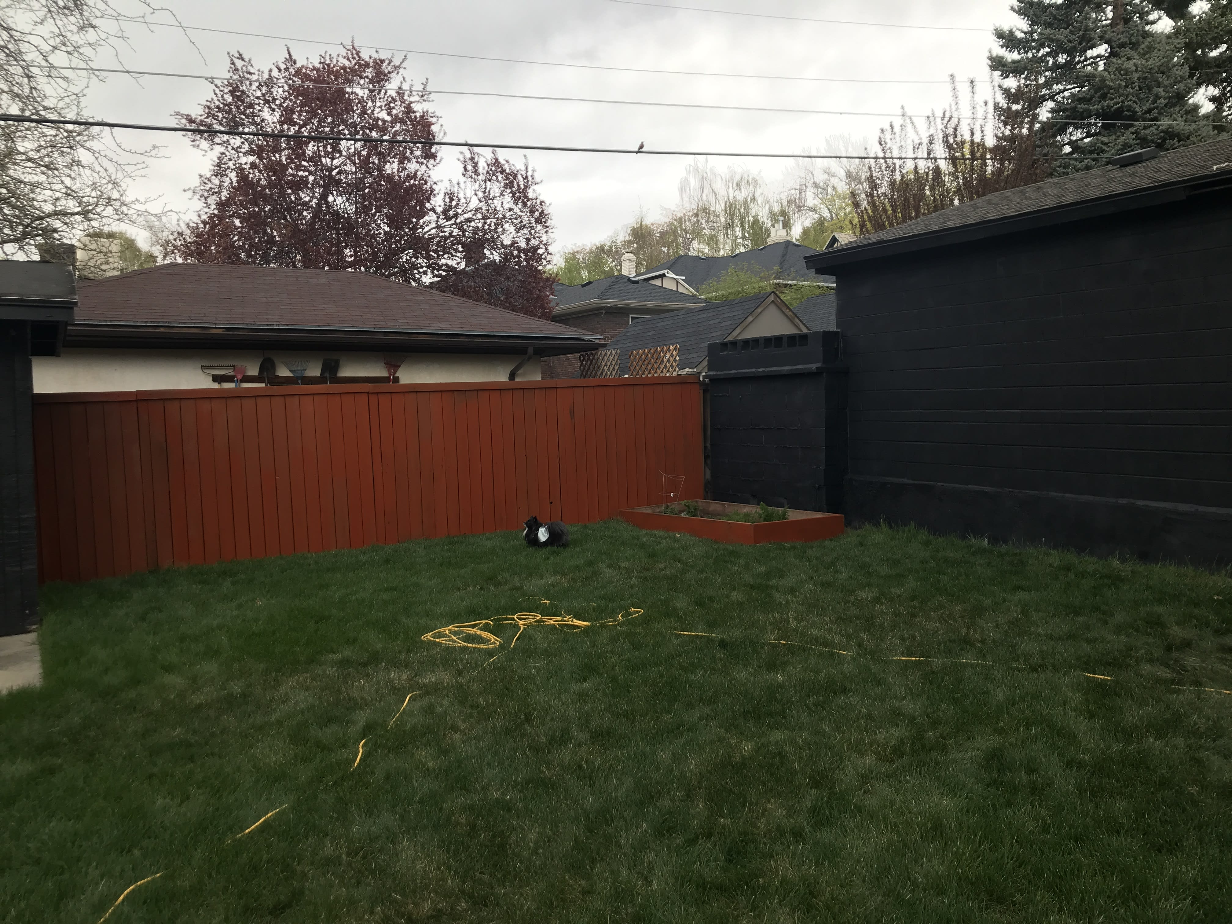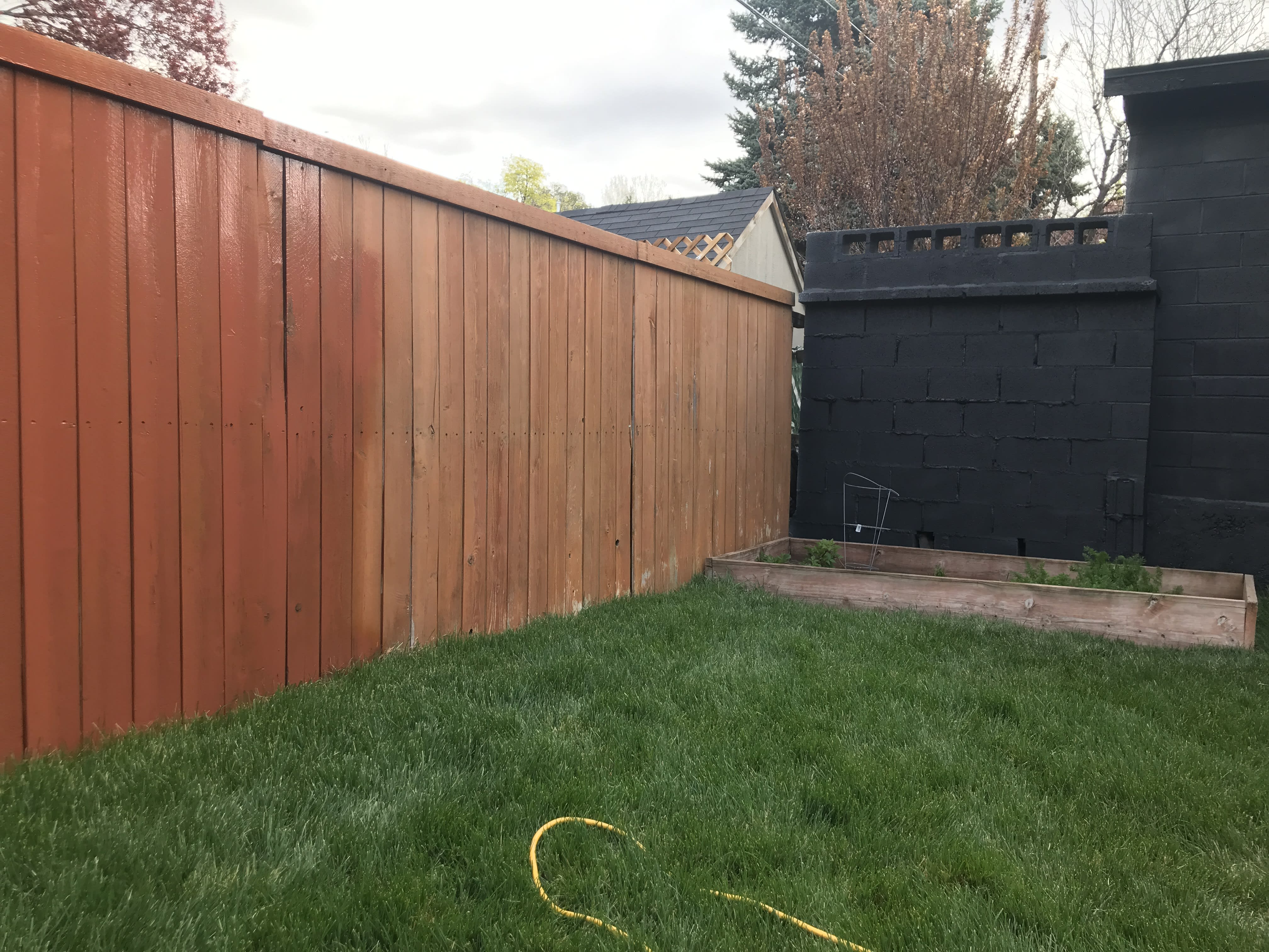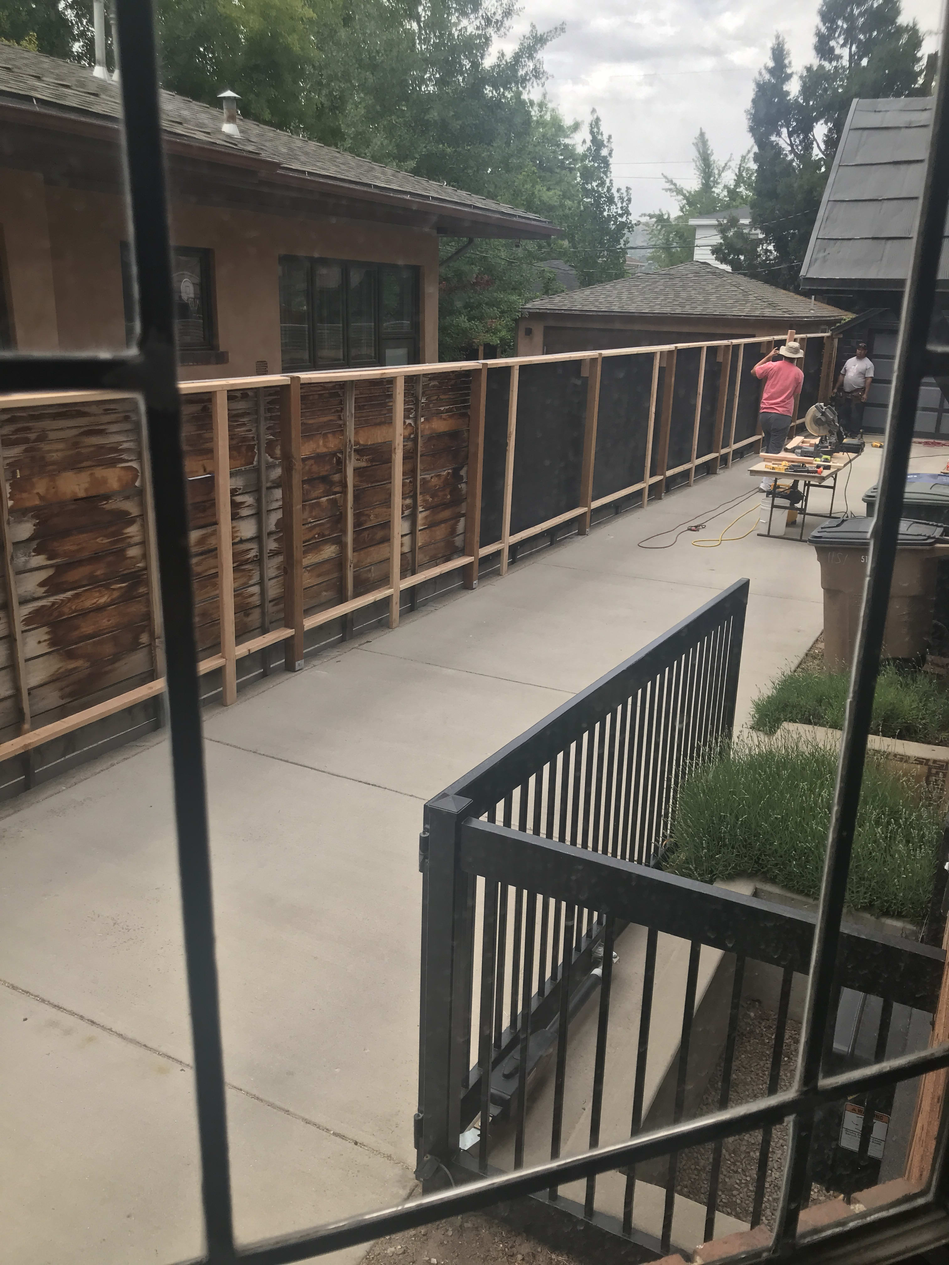 The next door neighbor attached his fence to our garage. If you can tell, that fence looked terrible. It needed to be refinished or painted. He saw me painting the other fences and was very clear that he didnt want me to paint my side of the fence. The fence that he attached illegally to my side. I said, ok. I bought some black sound proof fabric and stapled it to the fence. It looked great. The neighbor didnt like it because the air flow would stop... I mean what? I was about to have a breakdown. I called a Tongan friend and he built this crappy taller fence in like 2 days for me. When the neighbor came to say something, the Tongan guy looked at him in a menacing way. I felt protected by him. That is where I learned that white men love to harass women in Utah. I also painted the fence black.