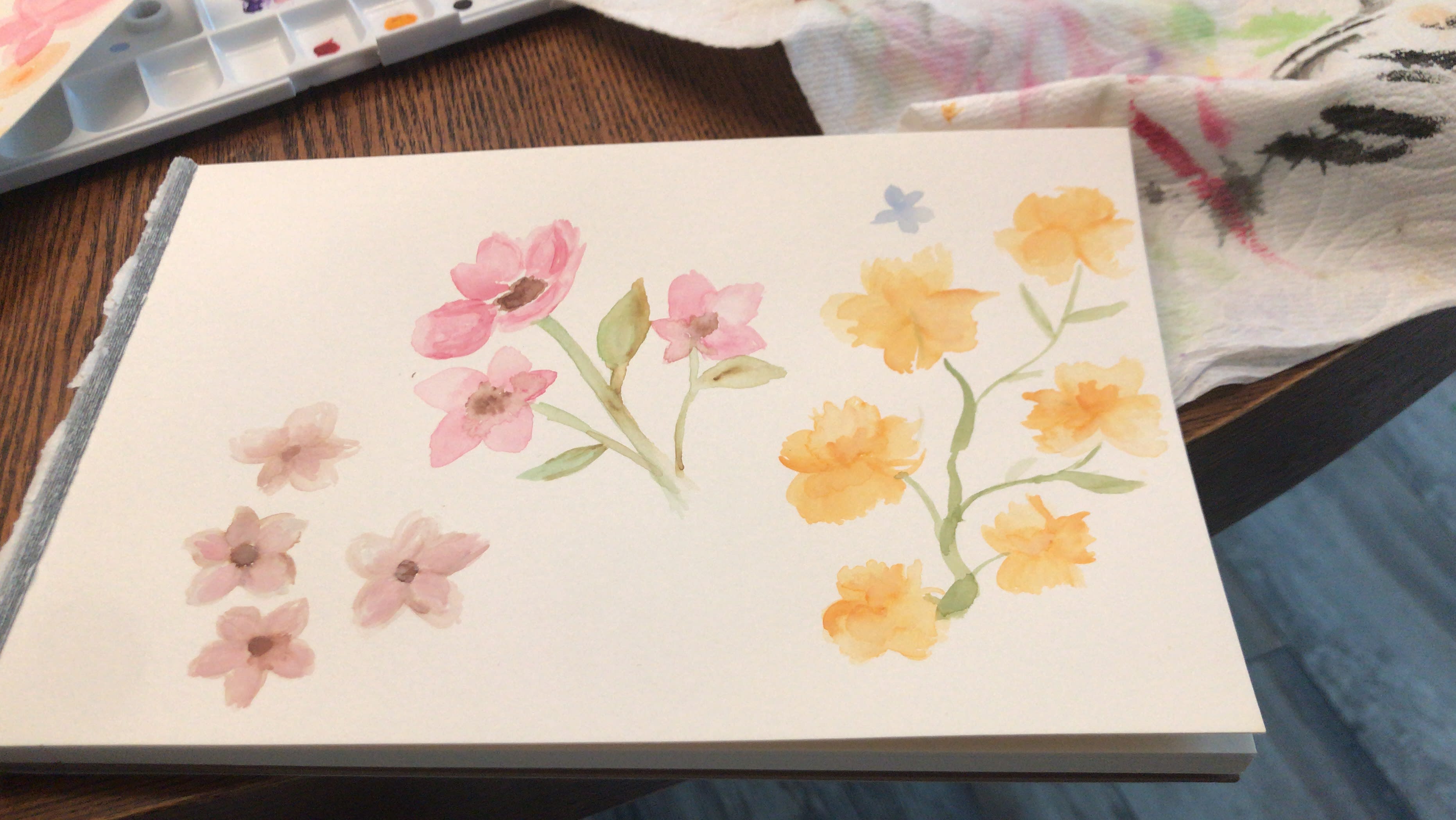 After everything was cleaned, I started to do water color flowers.