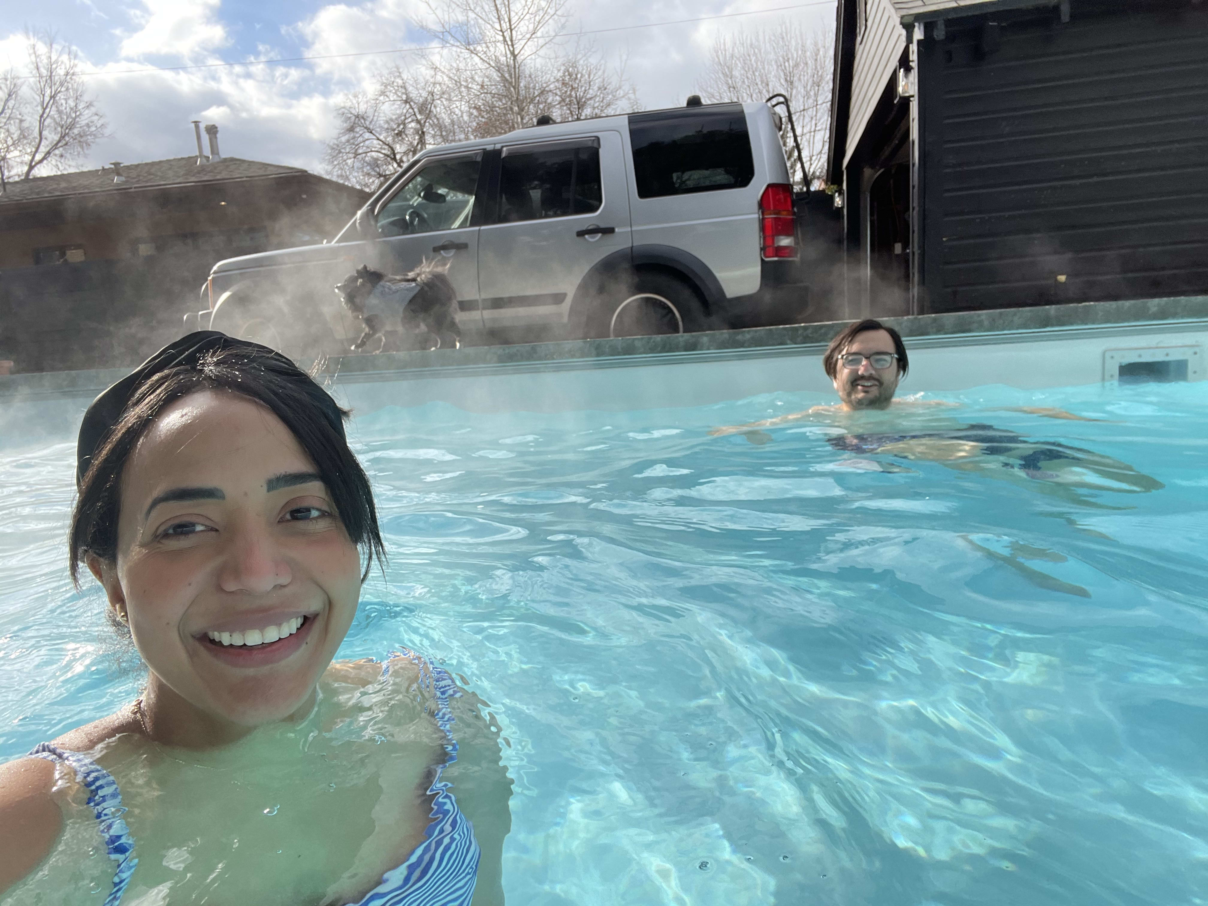 Our pool has been a great addition to our house. Sadly, this month we had a huge storm that knocked out the power for four days. We didn't have electricity, all our food got ruined, and we slept in front of the fireplace to stay warm.