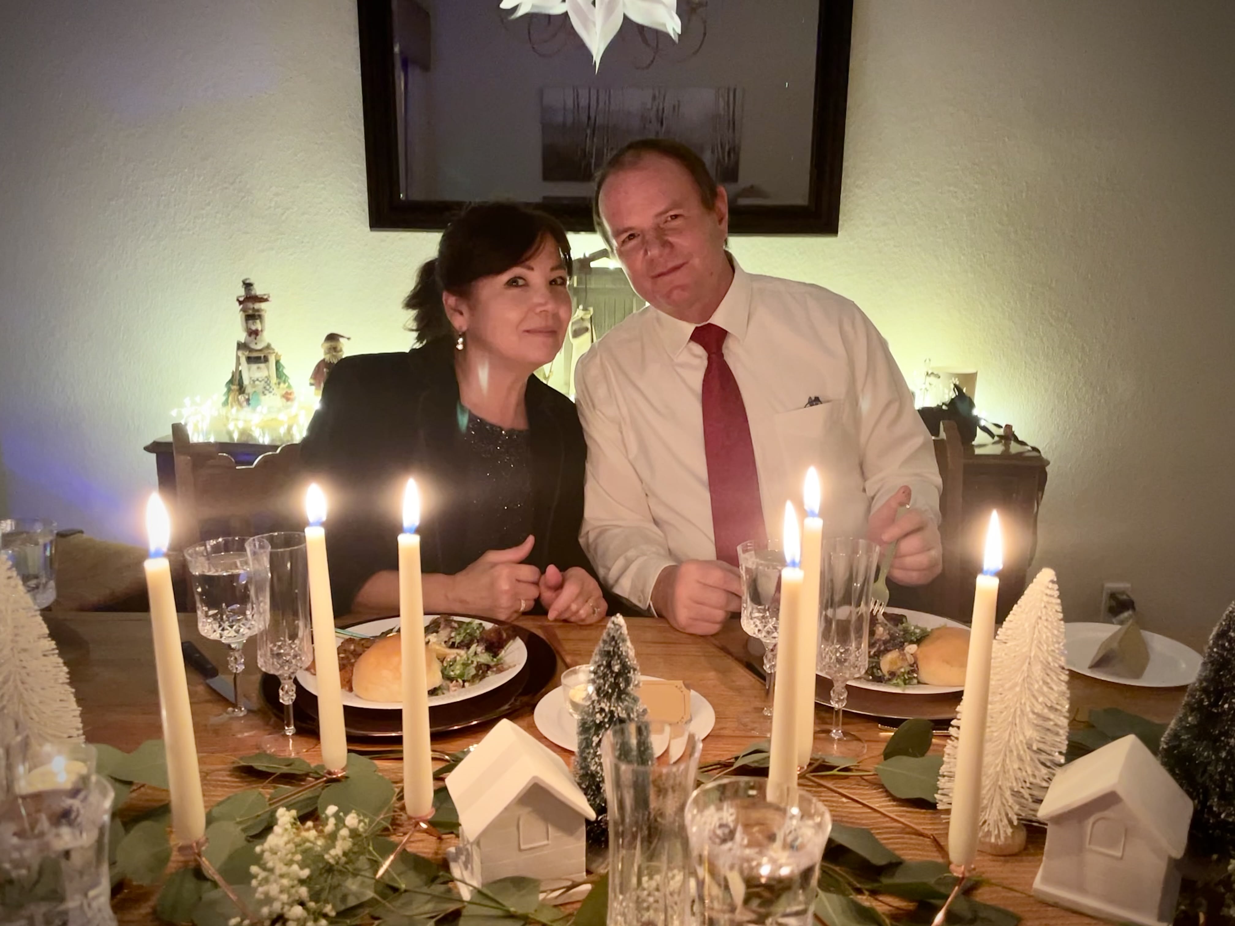 Thanksgiving dinner. Everything was very carby. After dinner, we went swimming in our backyard. We spoke in church for the first time in months. My beautiful Christmas tree.
