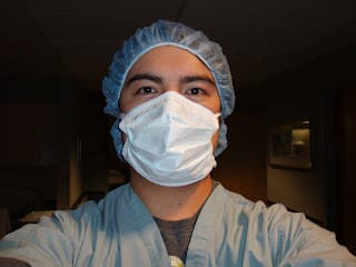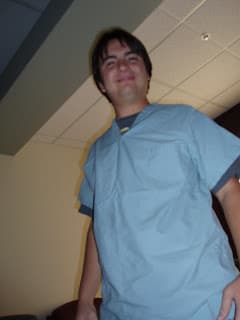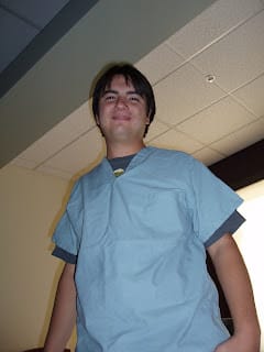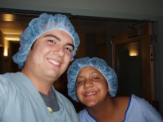 Jenny got really scared at the thought of undergoing major surgery and started having an anxiety attack. I tried calming her down and had her take some pictures of me in my scrubs. That helped calm her a little but then we said a prayer together and she felt better after that.