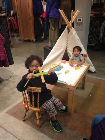 Playing at the Patagonia store.