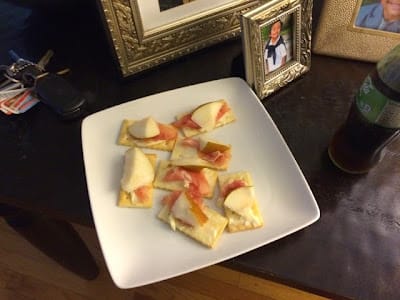 This month I was feeling a little fancy, so to speak. I have been snacking on crackers, Gouda cheese with prosciutto and pear. Heaven in my mouth.