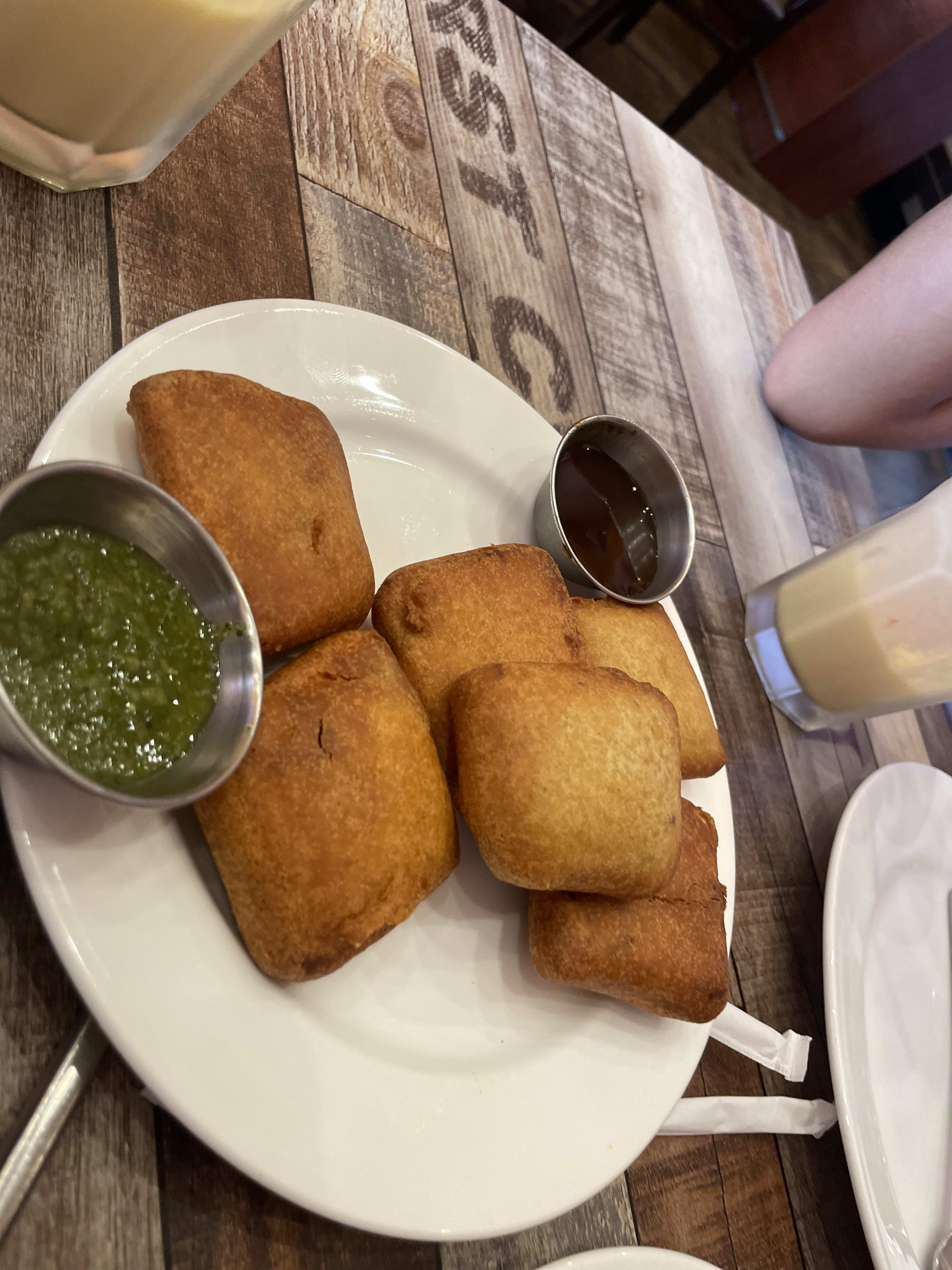 Our breakfast was some tasty mango lassies with garlic naan. We also had tika masala fries and some fried paneer for Mario. I remembered that I can't drink milk just in time. We think Mario is allergic to milk products. Every time he consumes anything with milk his face turns red and he gets these tiny little red bumps.