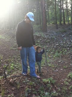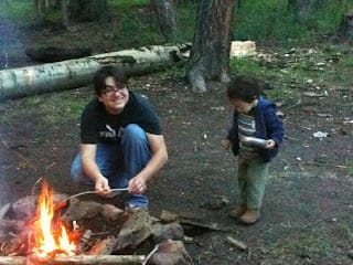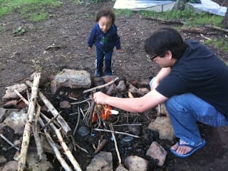 It's been raining a lot lately due to the New Mexico monsoon season so it was pretty hard to find dry wood for our fire. After a prayer by Jenny, thankfully we were finally able to get a nice fire going. We roasted polish sausages, made hot cocoa and Jiffy Pop popcorn.