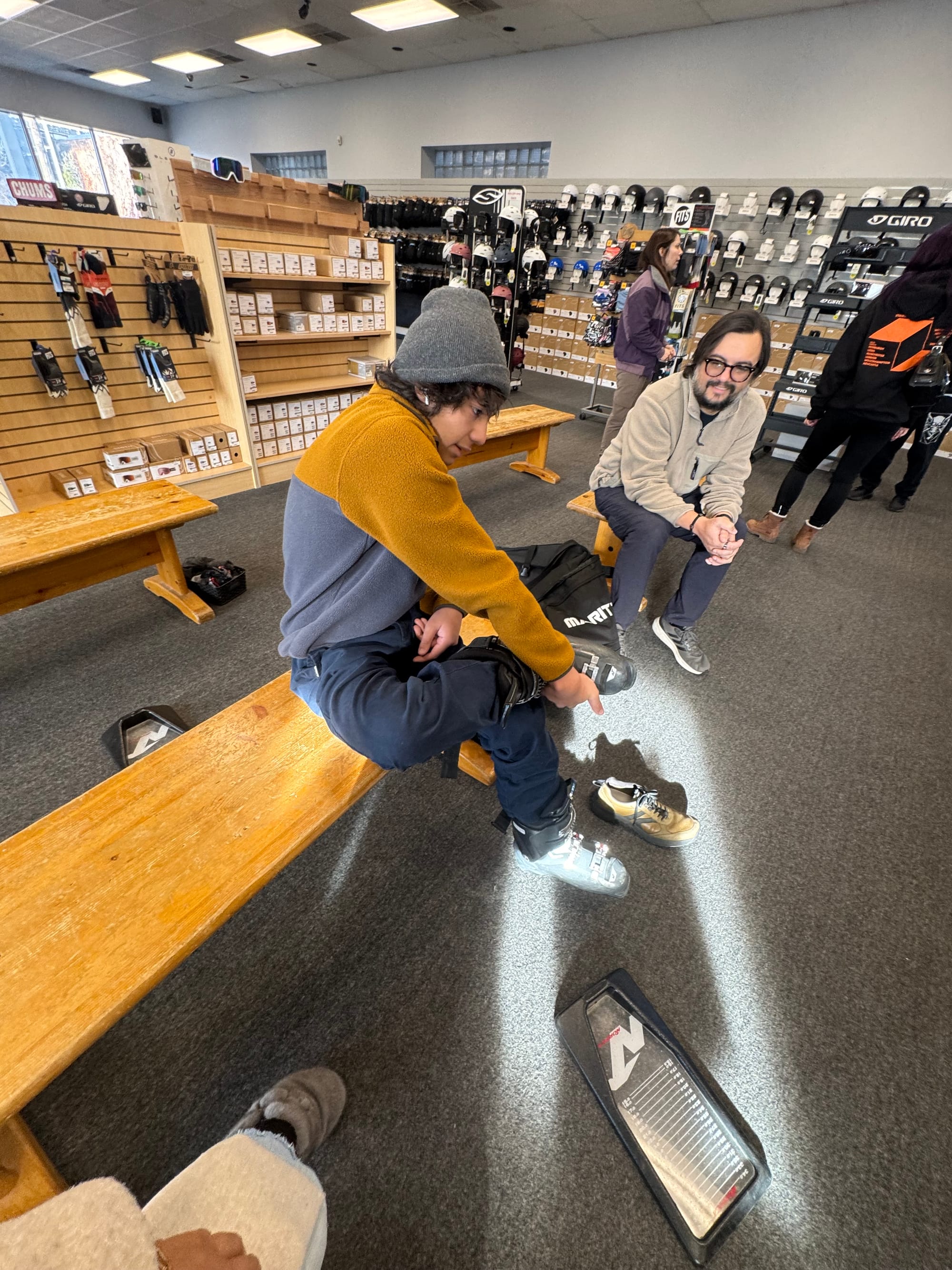 Some random photos. Mario getting sized for new ski boots.