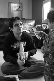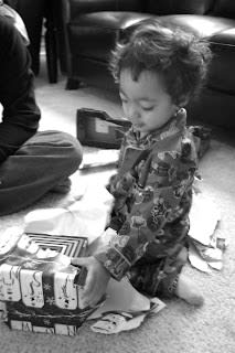 Jared opening presents.
