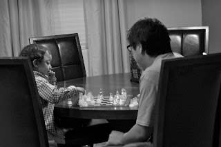 Jared teaching Mario how to play chess.