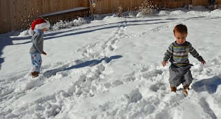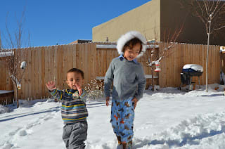 Last week snowed so much here in Santa Fe. The kids were loving playing in the snow. Every time Milo touches the snow he comes crying to me saying: "burn, burns"