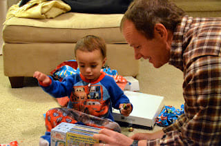 We had early Christmas with Celestine and Mike. It was fun having the grandparents over in our house. The boys were wearing the matching pjs and running around like crazy. We had Chinese take out for dinner and for dessert I made caramel brownies. It was a great night.