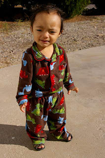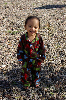 Before we moved from Belen, I took this adorable pictures of Mario wearing his favorite pajamas/lounging clothes in our front yard. He is such a great happy guy.