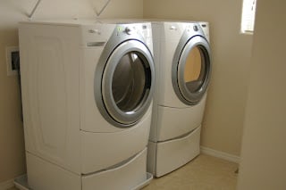 I got a new washer and dryer from Jared. Thank you Jared!He got the stands that goes under the machines, so I won't hurt my back. Our laundry room still looks spacious enough to have the rest of the things we need in there. I like having a bigger house.