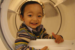 Mario was my model for the day, he was so playful and curious with the washer and dryer. I think he doesn't know what they are. Too many bottoms perhaps.