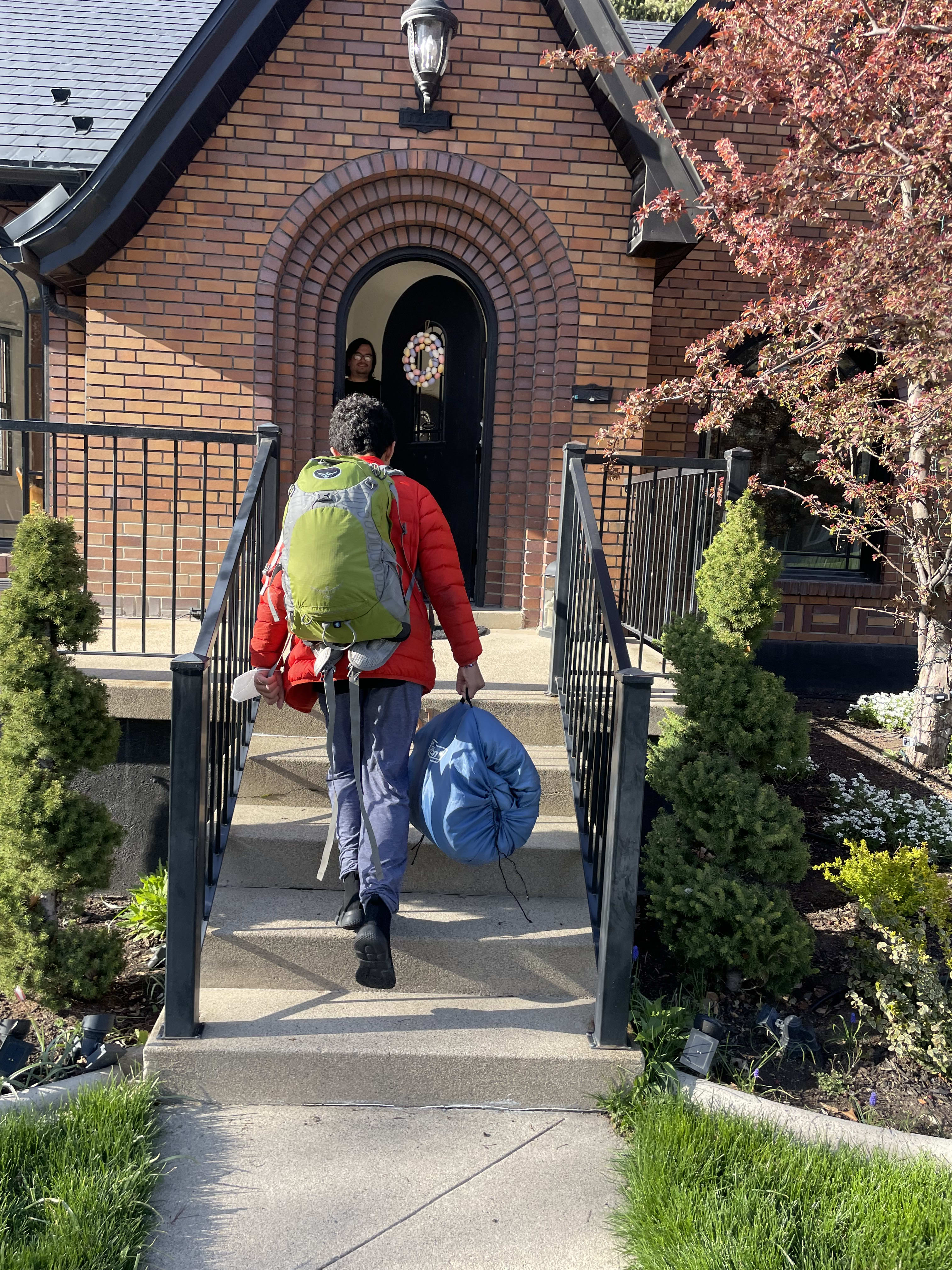 Mario went on a campout with the young men. He loves spending time with the YM. He was really proud of working on the fire at the cabin. I also saw a goose on my way to ward council on top of the building. Jared and I are still trying to eat healthy and we are failing miserably. We enjoy eating. One of my attempts to cook healthy was me making salmon and parmesan couscous on top of a salad. It was really good.
