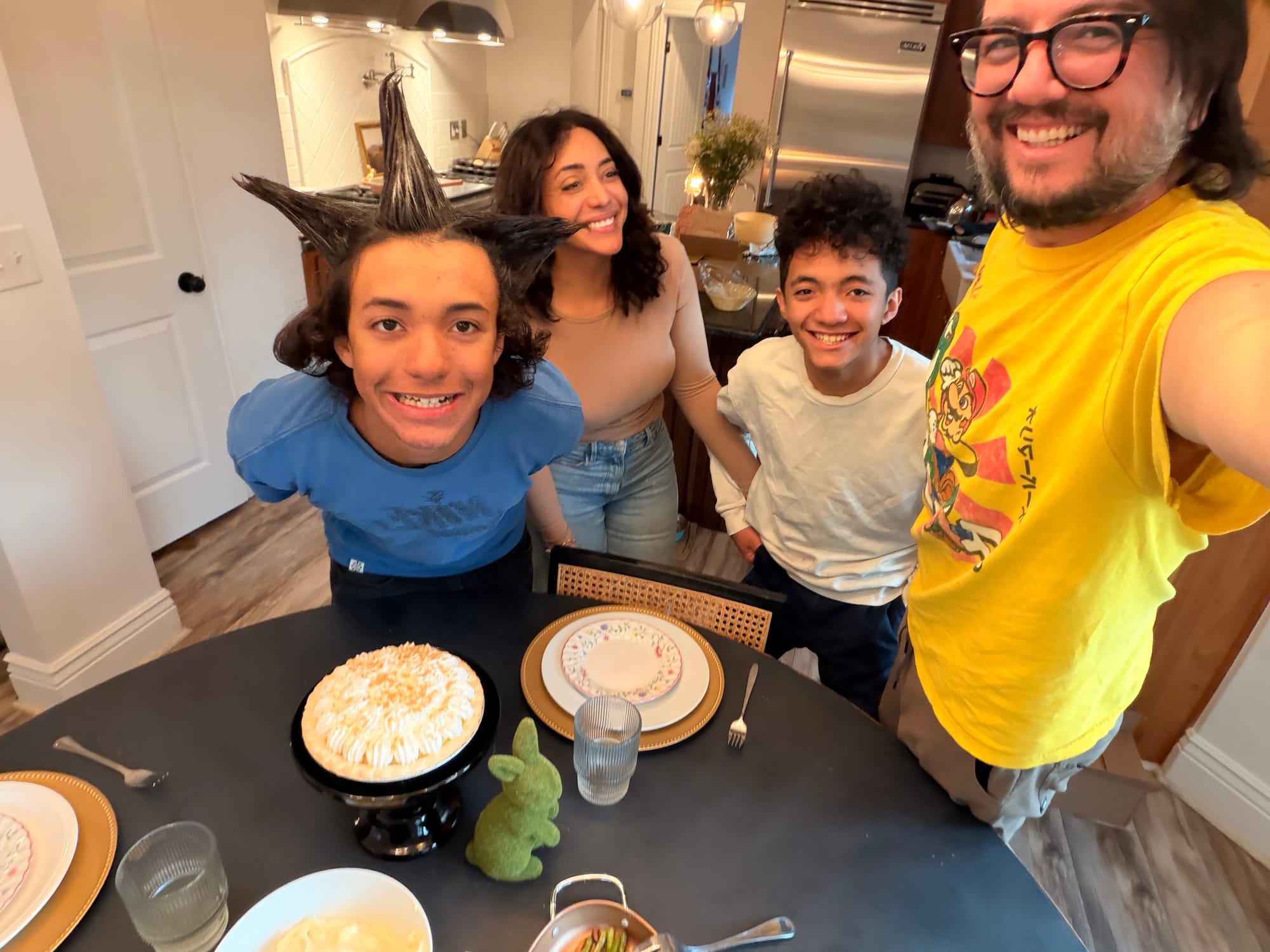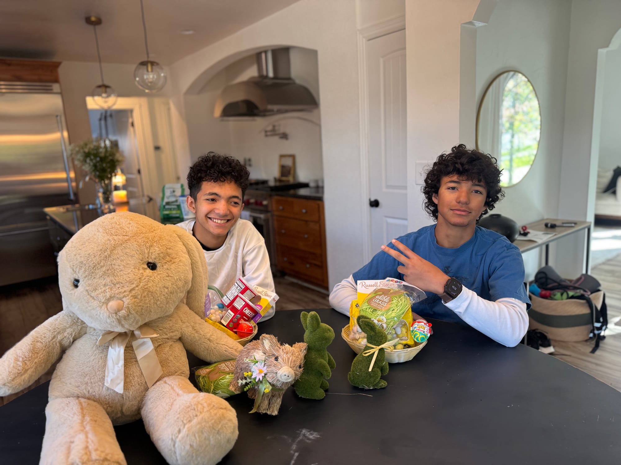 Easter at our house felt extra meaningful this year 💛 The boys got their yearly baskets (of course 🐣), and yes… the dogs did too—because in this family, no one gets left out.