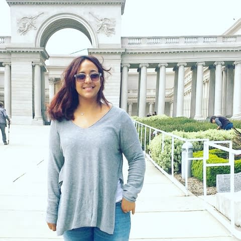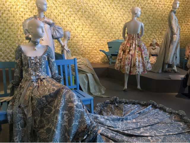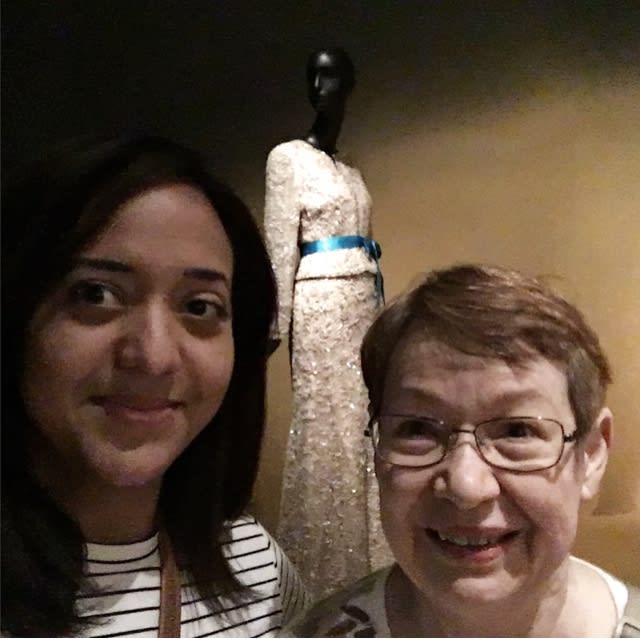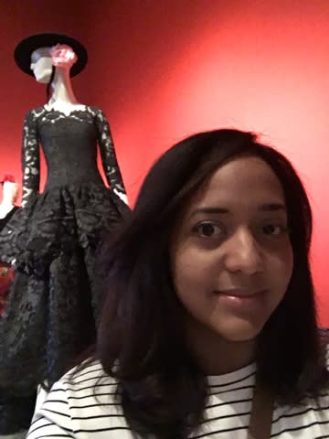 At the Young museum looking at the Oscar de la Renta exhibit.