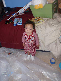 I went to Mario's first play date at my friend Emily's house, which is the most beautiful house I have ever seen. Well, I wasn't surprised that her child's room looks like a room from a magazine, she has three small children under the age of three and still had time to decorate. I was so inspired by her son's room that I decided to paint Mario's room. The first mistake was that the color was flat and it made the room look smaller. Mario's room is already small so I didn't like that.