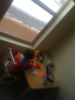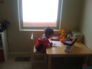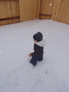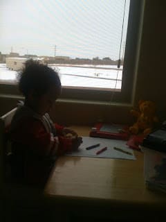 Today I was in Mario's room working out (he doesn't like to be alone in a room). He loves drawing and looking outside at the beautiful snow.
