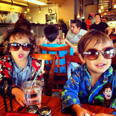 We later went to Crepe Vine. The restaurant has enormous portions. The boys are wearing sunglasses indoor because the sun was in their eyes and thankfully I had extra sunglasses in my purse.