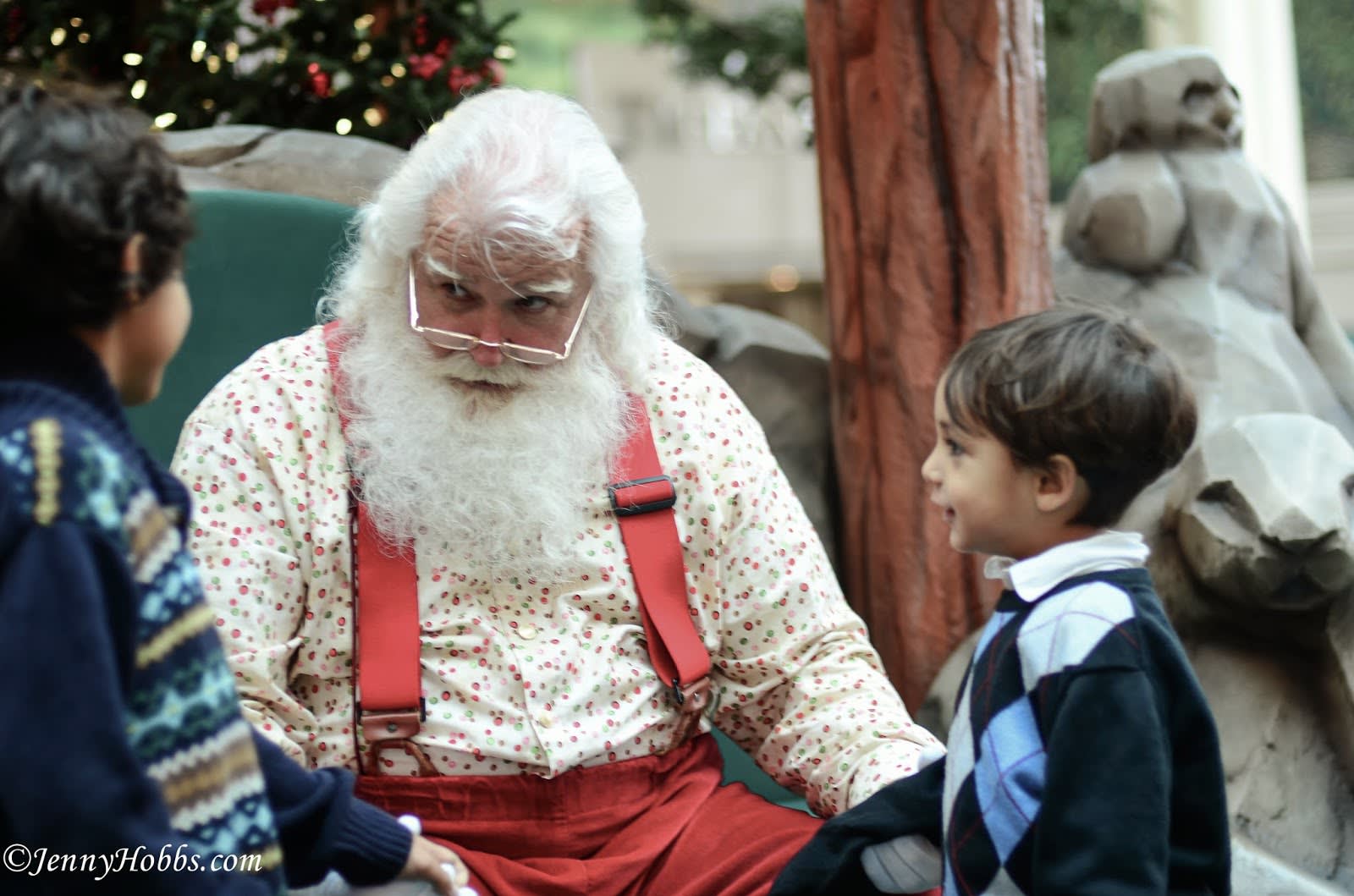 Santa was asking Mario if he has been a good boy? Can you see the serious face that Santa made?Santa was deceived by Milo's cuteness, and he asked the wrong child. Milo is the trouble maker.