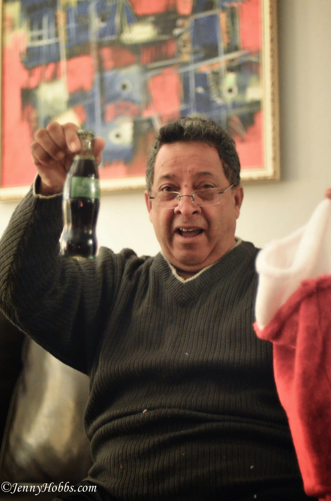 My dad with one of the presents from Santa left on his stocking.One of my main presents from me to my dad was to help him rebrand his business by building a custom website Union de Profesionales Julio Francisco Cabrera y Asociados. We also design new business cards together. We are also working on marketing strategies to grow his business. I think he is doing that to help me with money.