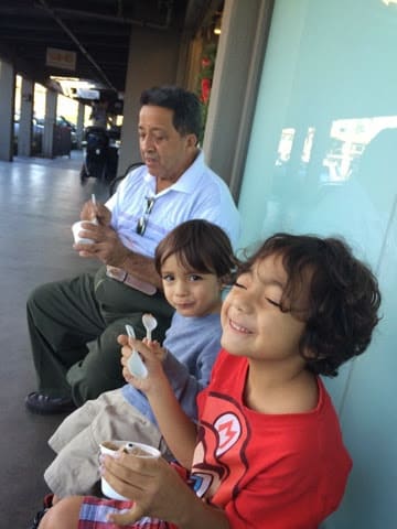 We went to pick up my dad at the San Jose airport. After that, we went to eat Korean food. I dropped Jared at work . I took my dad for Ice Cream and shopping. He took the boys to their favorite toy store and let them go crazy.