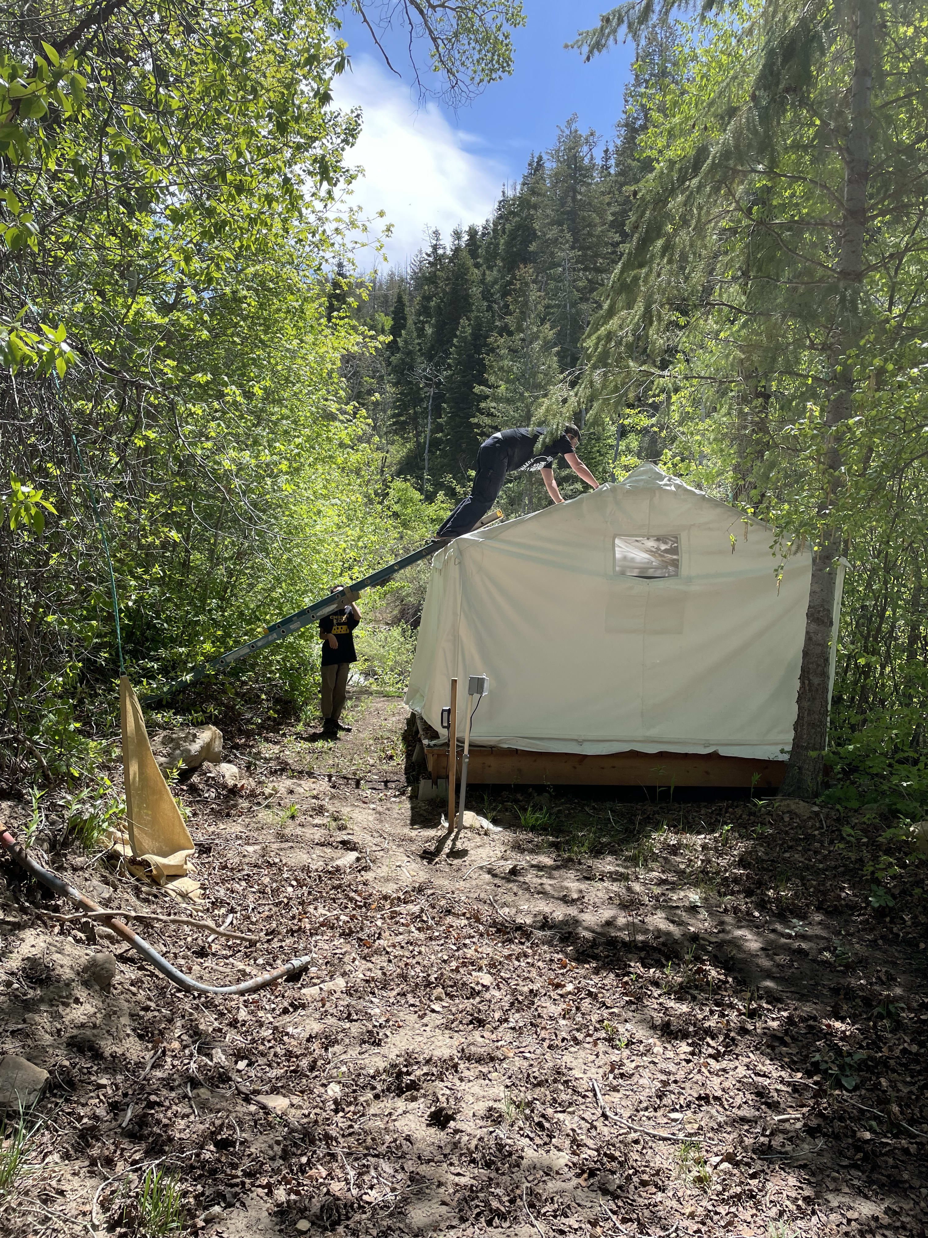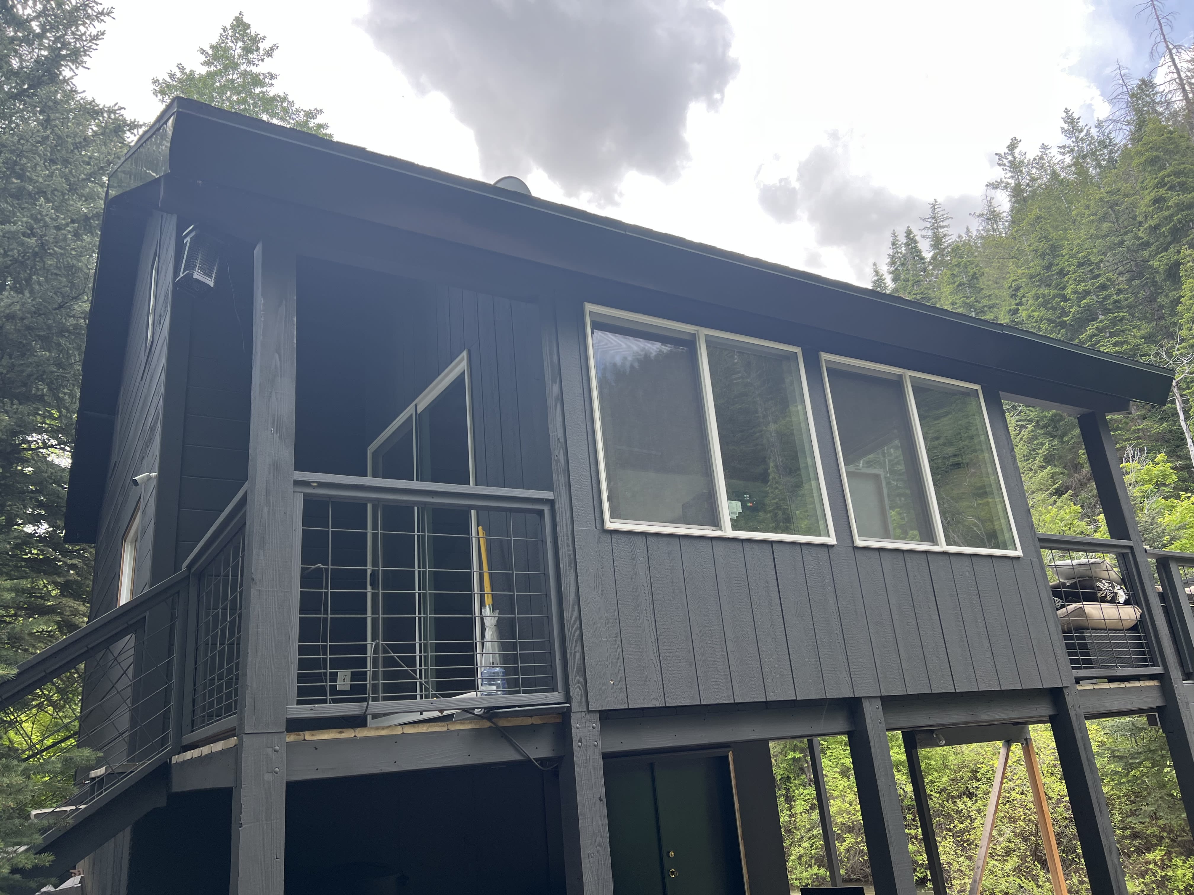 Jared and the boys went back to SLC to finish the school semester and work. I stayed at the cabin supervising contractors cleaning the property, building a new bunkhouse, and for the installation of the soffits. As you know, I am dieting and I am mean when I don't eat. It serves me very well when dealing with men (contractors).