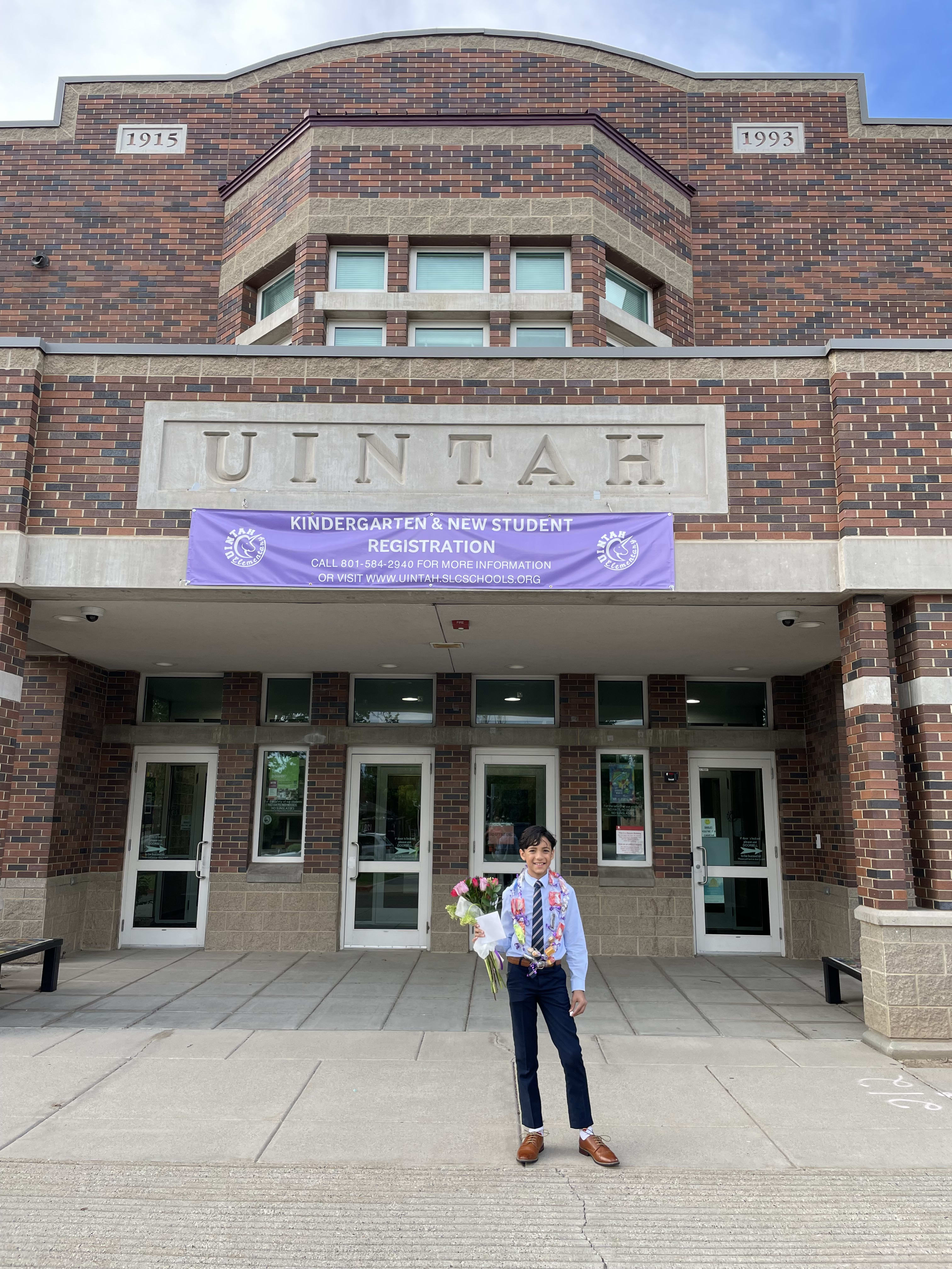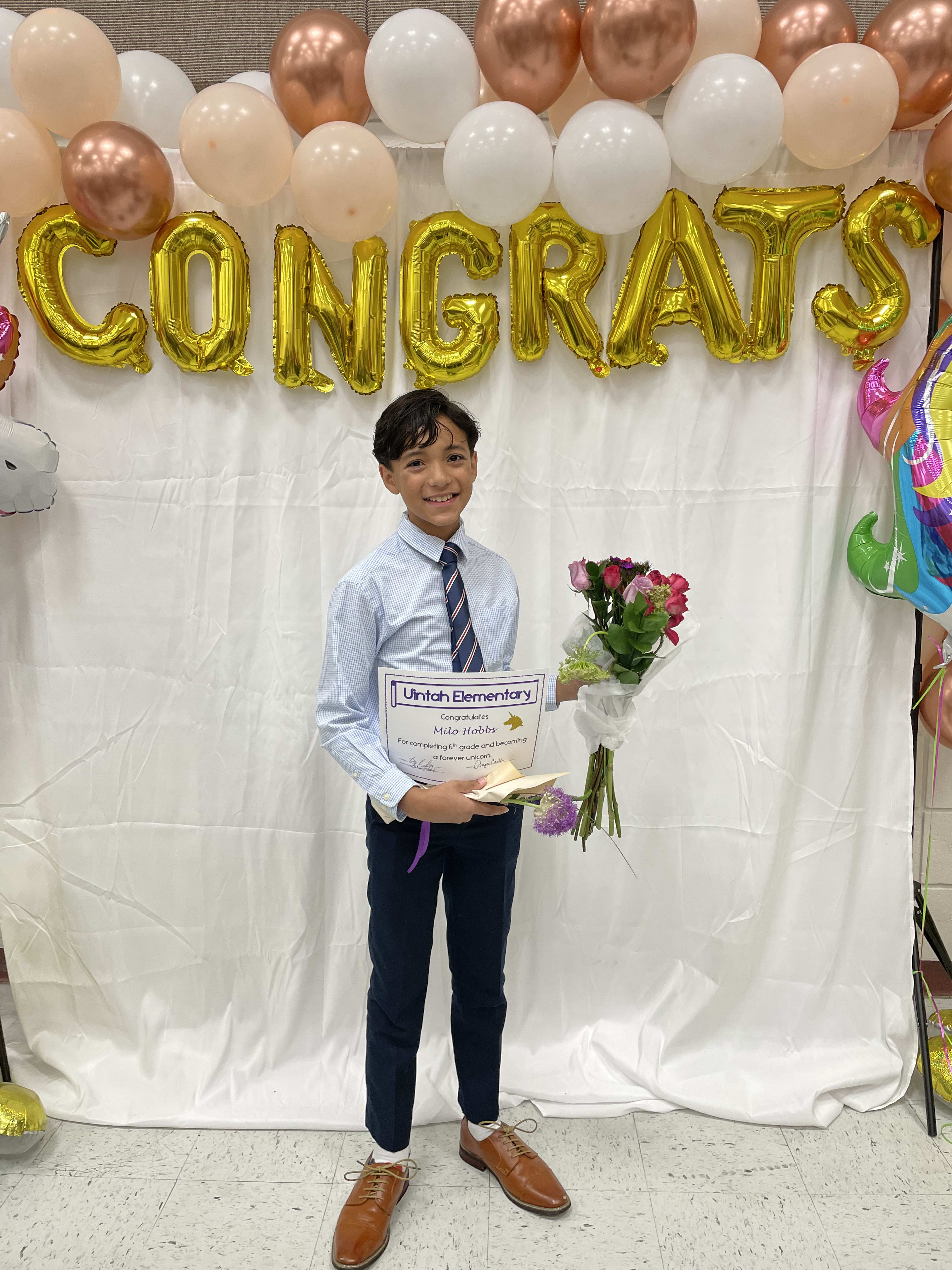 Milo graduated from elementary school. He is ready for 7th grade!