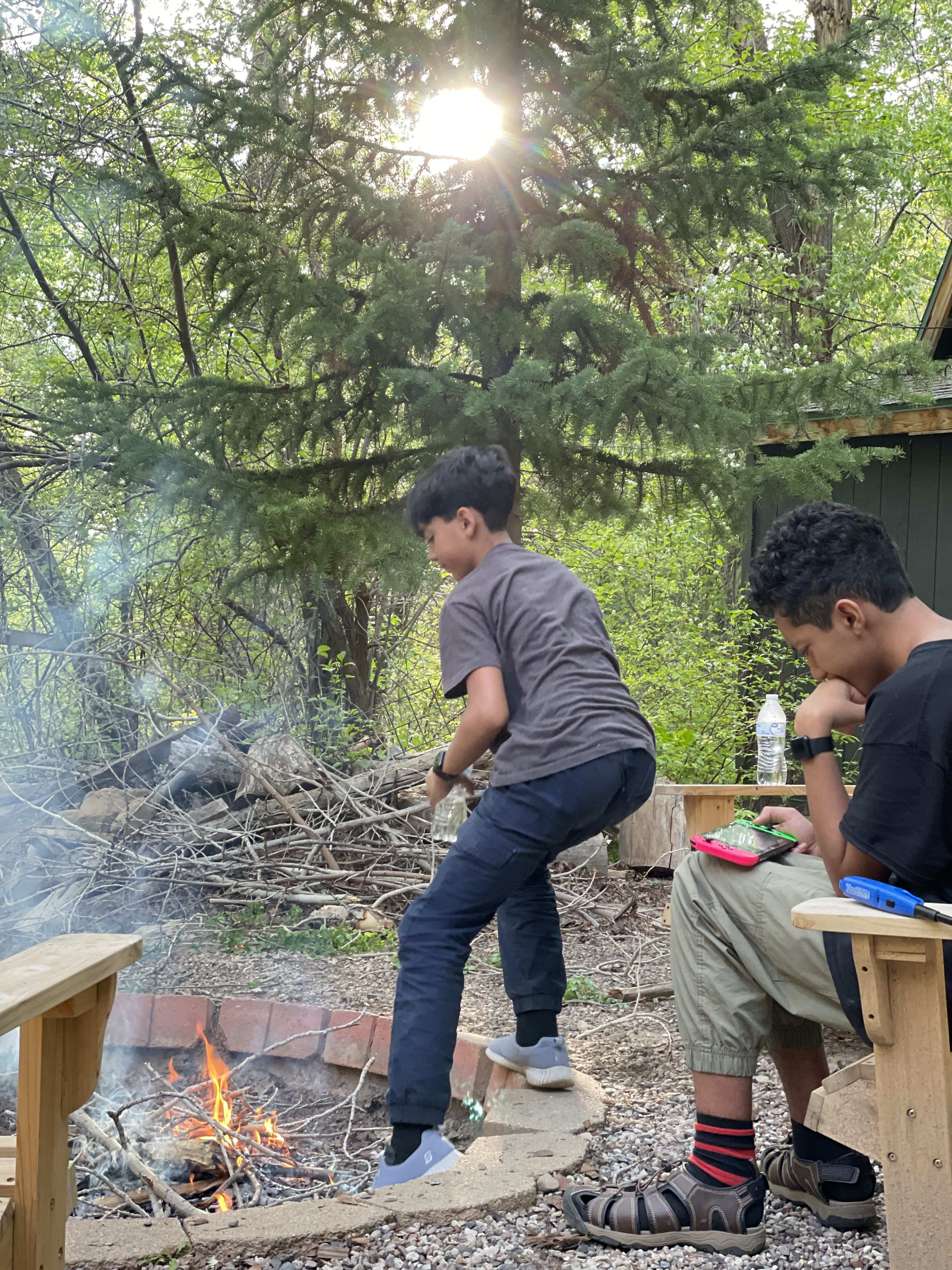 It gets really cold at night time. We watched an outdoor movie and it was too uncomfortable for me. Our water heaters broke down; we were literally camping. Jared fixed the one inside the cabin (after the water explosion) and I could finally let the boys have an outdoor fire.
