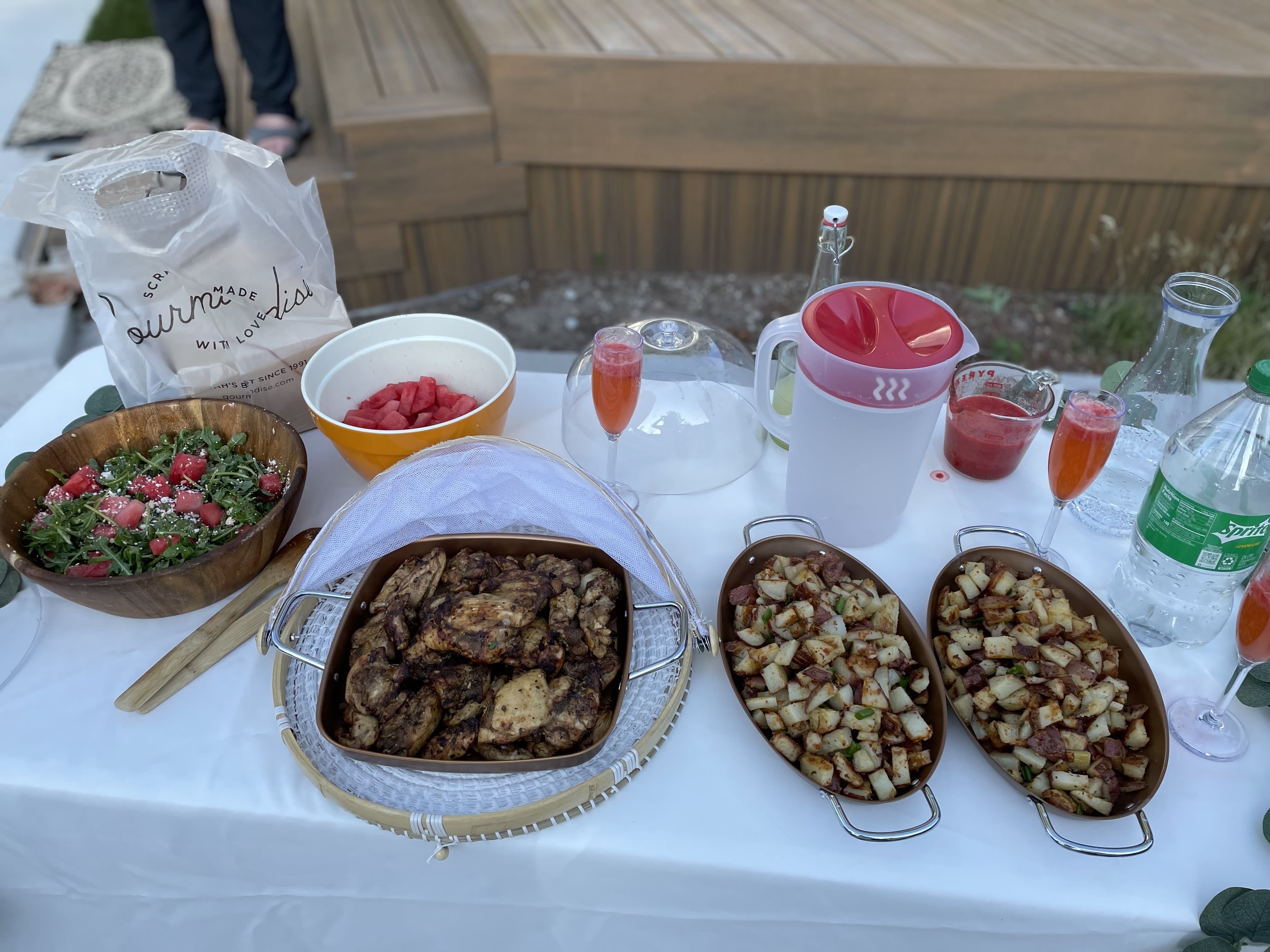 I hosted an Elders' Quorum dinner at my place. People are so rude. They RSVP'd and didn't show up. I am glad I invited the Soto family (love them) and Jestin's family. I made everything from scratch and power washed my deck. Milo made some strawberry lime mocktails.