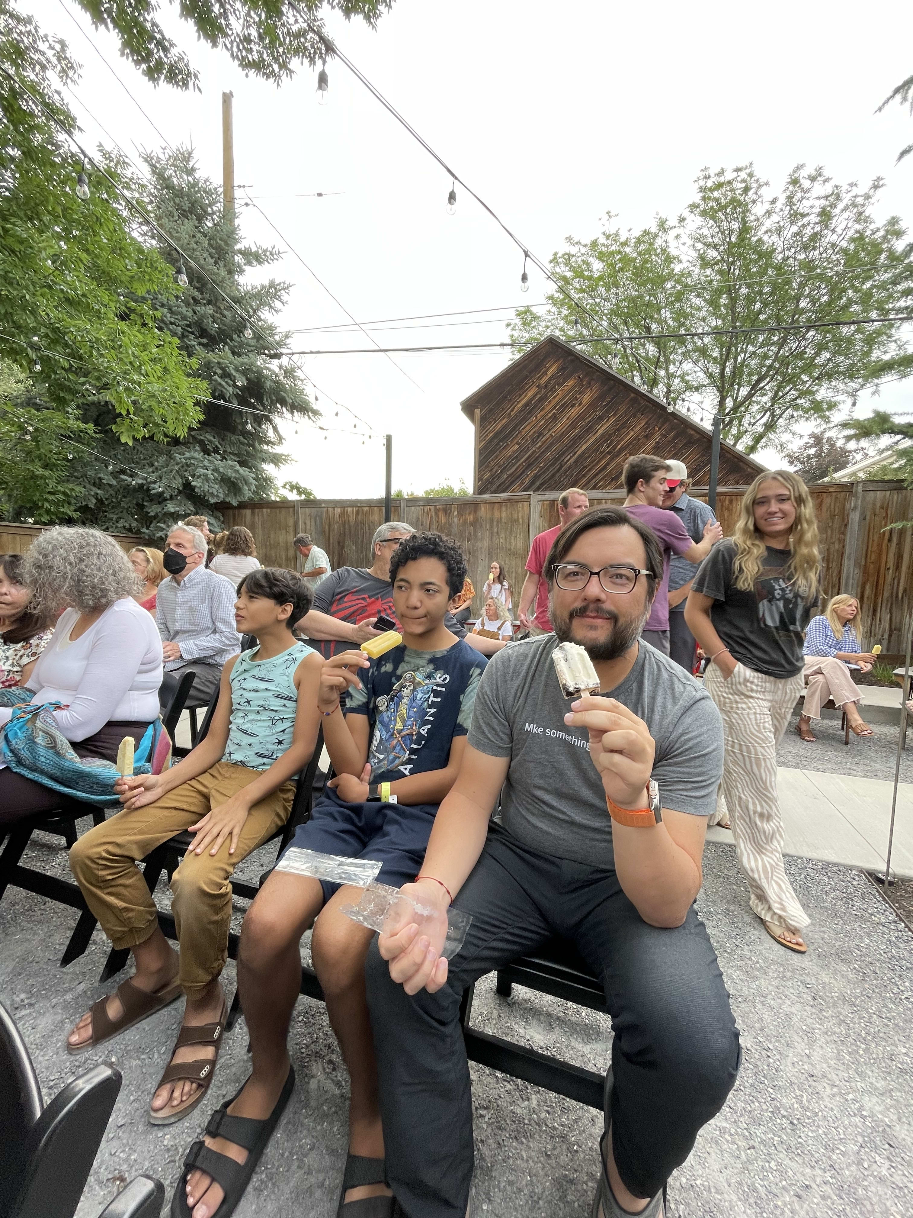 After picking up Mario from Provo. He looks so happy and changed. His testimony of the gospel is strengthened. I am happy for him. Our friend Paul Werner invited us to a concert in his new backyard for his nephew's band.