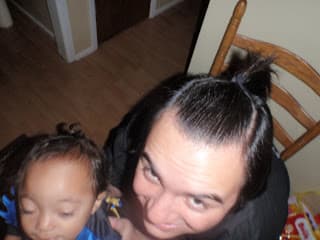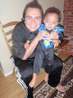 Mario and Jared dress as Samurais for halloween. Look at their tiny pony tail.