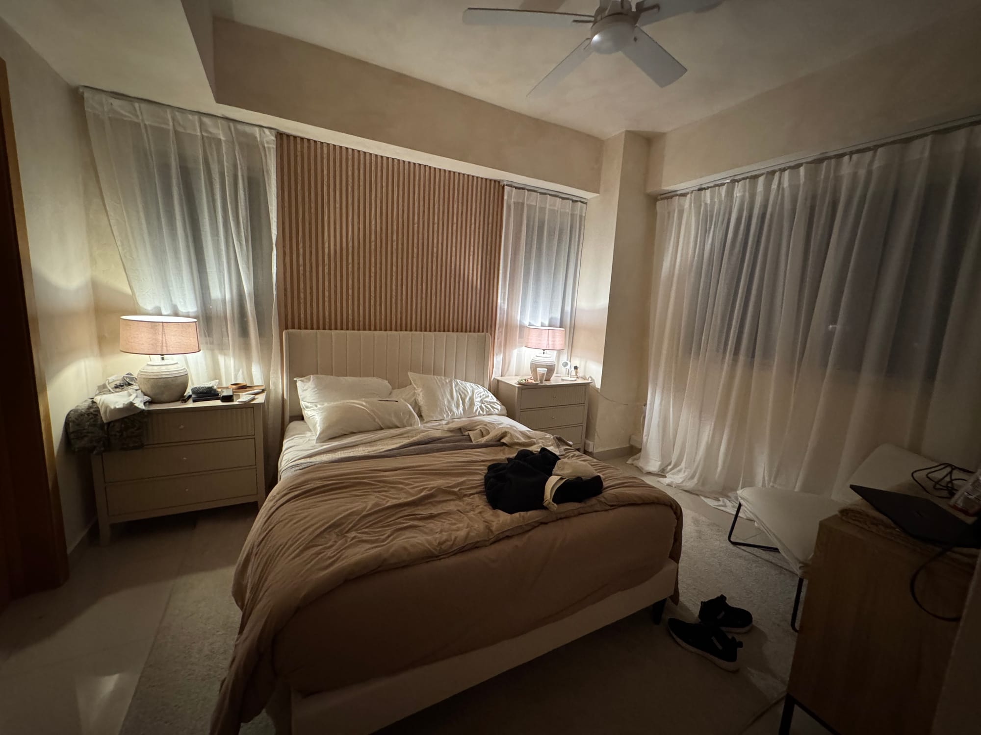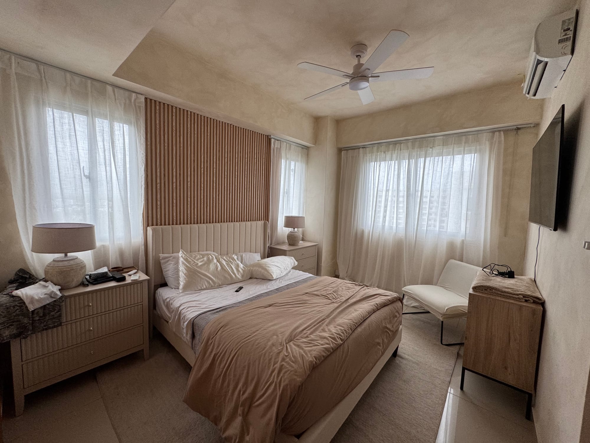 Another short trip to the Dominican Republic. I had contractors changing a few things: New wall colors, new storage for the bathroom, new railings for the curtains, and redo my bathroom using Microcemento.