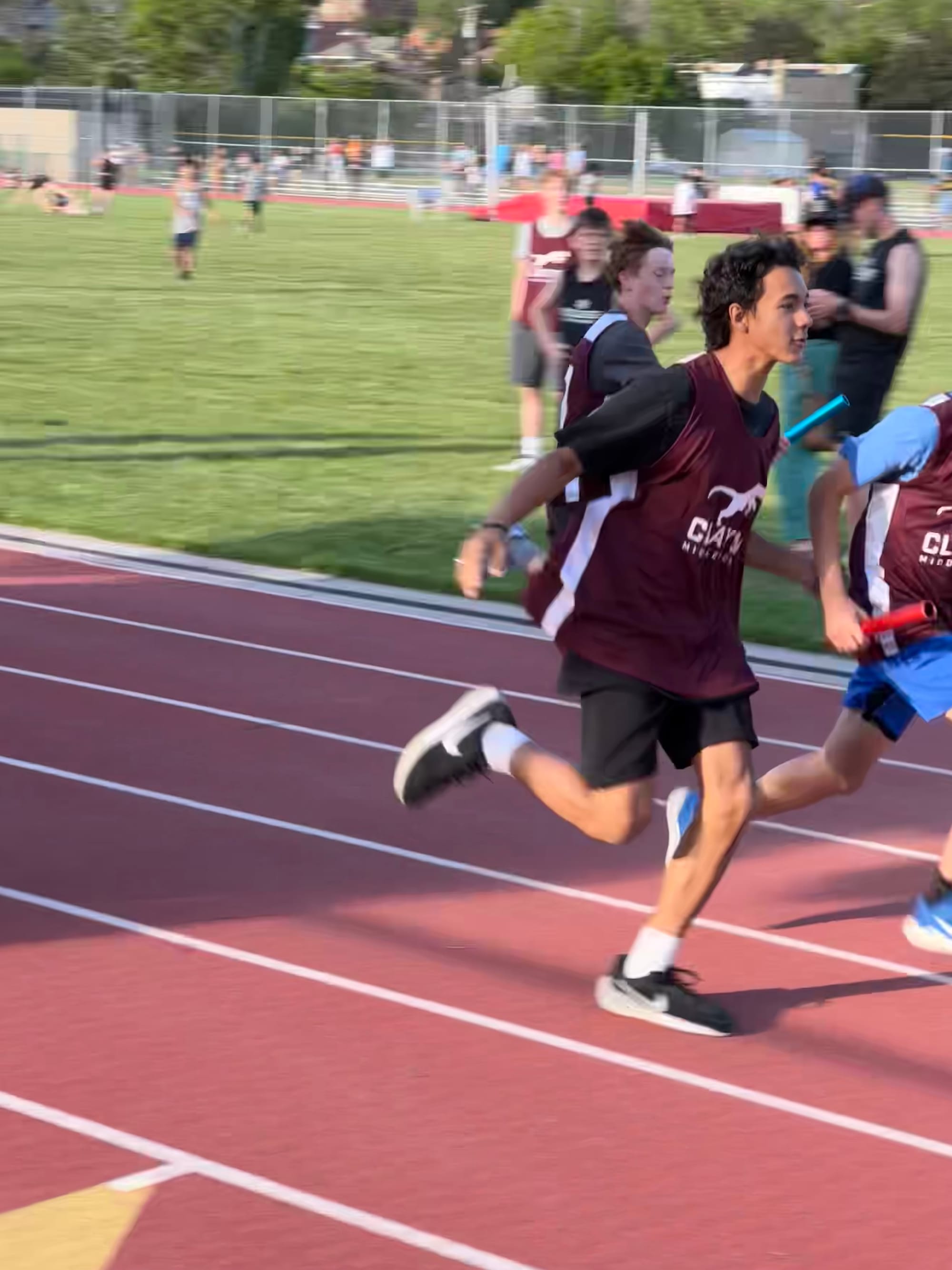 Milo at his last track meeting at West High School. He invited us to the last meet. He was 3rd in one of this category and his team got second place at 4X100 meter race. Isn't he gorgeous? I love how confident he is.