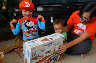 My mom is in New York right now and she sent the boys this awesome present. They loved it. We open the presents from the grandparents early. That is our family tradition and the boys love it.