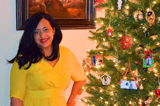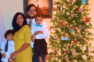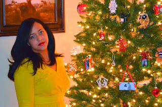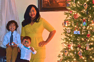 I like to dress up for Thanksgiving, christmas, new year and any other important holiday. We were playing with our new camera (Nikon D7000 with 18-200mm VR Lens) but somehow the camera focused on the Christmas tree instead of us.