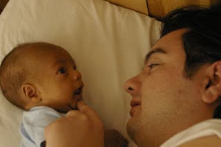 I haven't posted for a while; I have been trying to catch up on my sleep but nothing seems to work. Milo has some good days in which he sleeps pretty well, and later he gets into his days where he doesn't sleep at all. I don't like it at all. Jared and I look like drug addicts with our eyes so red from lack of sleep.Milo is going to be 2 months old in ten days. He weighs eight pounds, likes to sleep listening to the sleepy time station on Pandora.com, he likes to smile, poop, throw up, wake up at night, he makes cute noises, likes to try to crawl, he rolls over and tries to stand up. It is really cute. Jared and I can't wait until he sleeps the whole night. It seems to us that Mario never had problems sleeping. He probably did but Milo is just a lot of work, but he is too cute, so we can't stay upset with him.We went out to eat for the first time with our whole little family last week at Weck's and we had a friend over for dinner tonight. I hope we can start settling into a normal schedule.