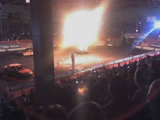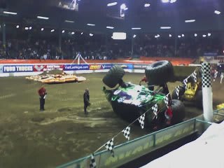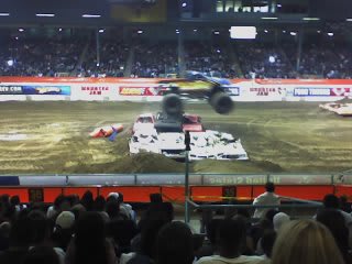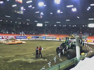 Jenny and I went to Monster Jam 2006 last Saterday with Jacob and his date because I won free tickets. It was pretty cool. We forgot to bring a camera so the photos and video are really bad. (Taken with my phone, sorry!) Enjoy! (You might want to turn the volume down for the movie. Those trucks were loud!)
