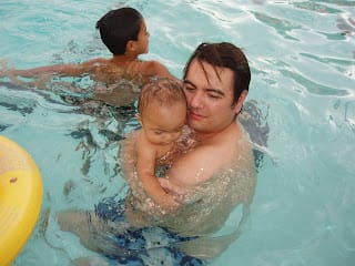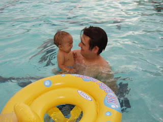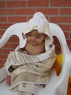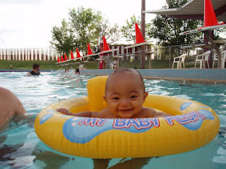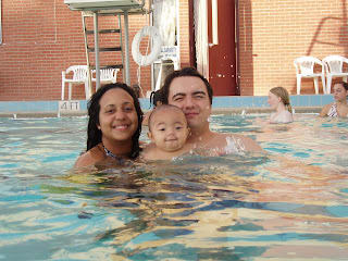 We went to the pool with the mutual from the Belen ward. Mario was having a fun time, but it was getting a little cold and his lips were turning blue. I took him out of the pool and he started crying.