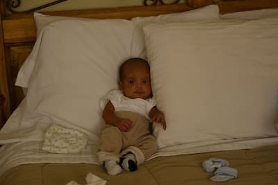 Like I said, Mario loves to sleep in our bed. These are some pictures at three in the morning of Jared and Mario sleeping in the bed. There is not space for me in the bed because Mario doesn't like to share his side of the bed.