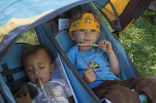 Milo was very tired and Hudson was enjoying his little unicorn horn.