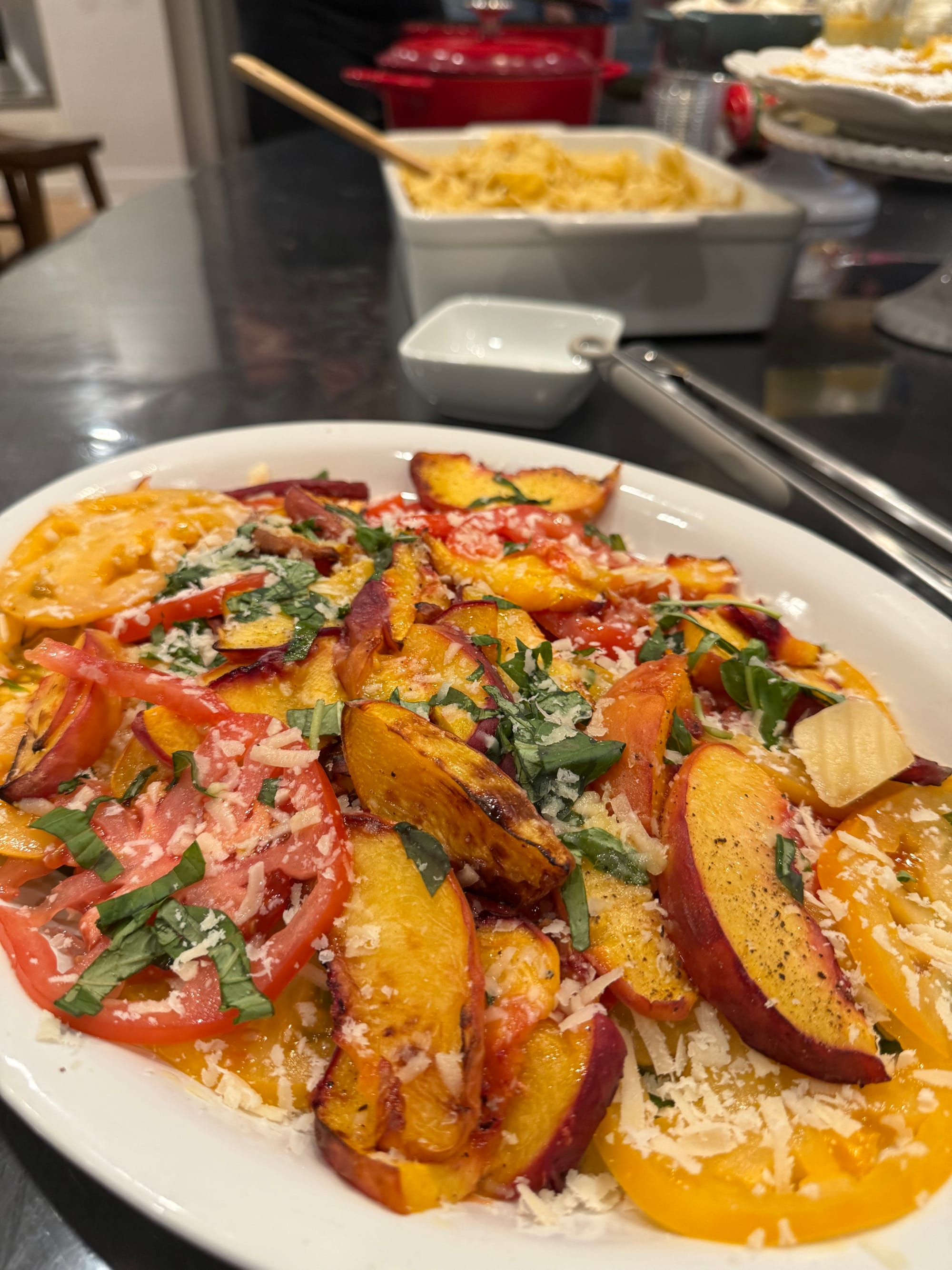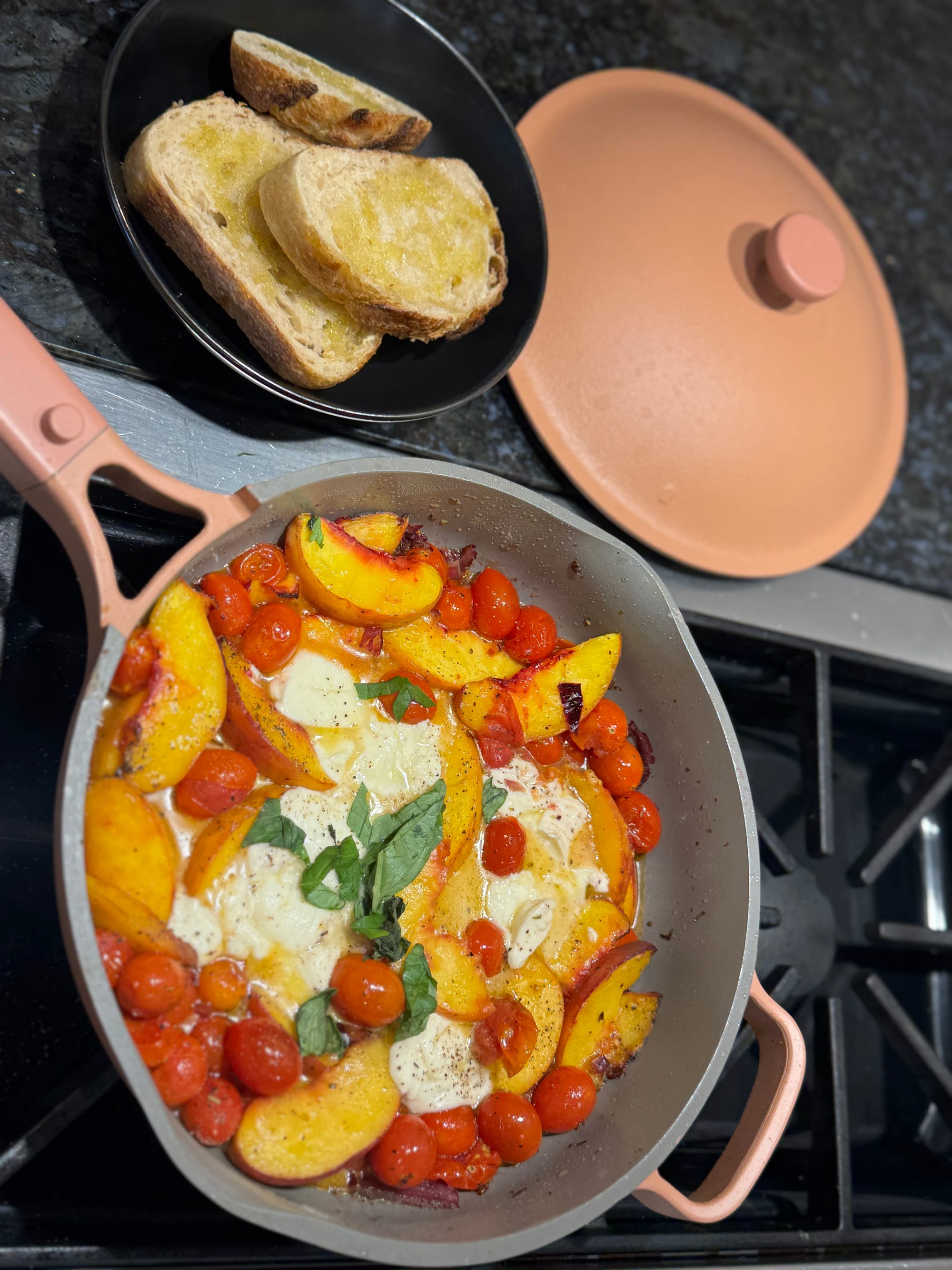 I was invited to another cookbook club and had the best time meeting new people and just hanging out. 🤍 I made a roasted tomato & roasted peach salad, which turned out so good! I loved the recipe so much that the very next day I created my own version—with creamy burrata on top. 🍑🍅✨