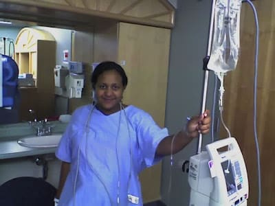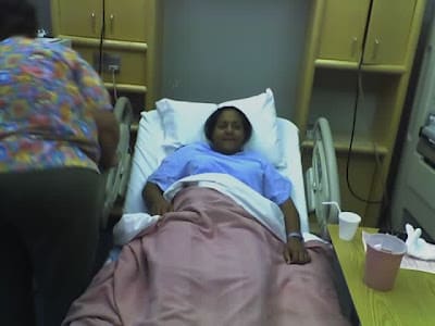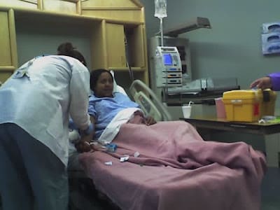 Here's where they were sticking her for the IV: