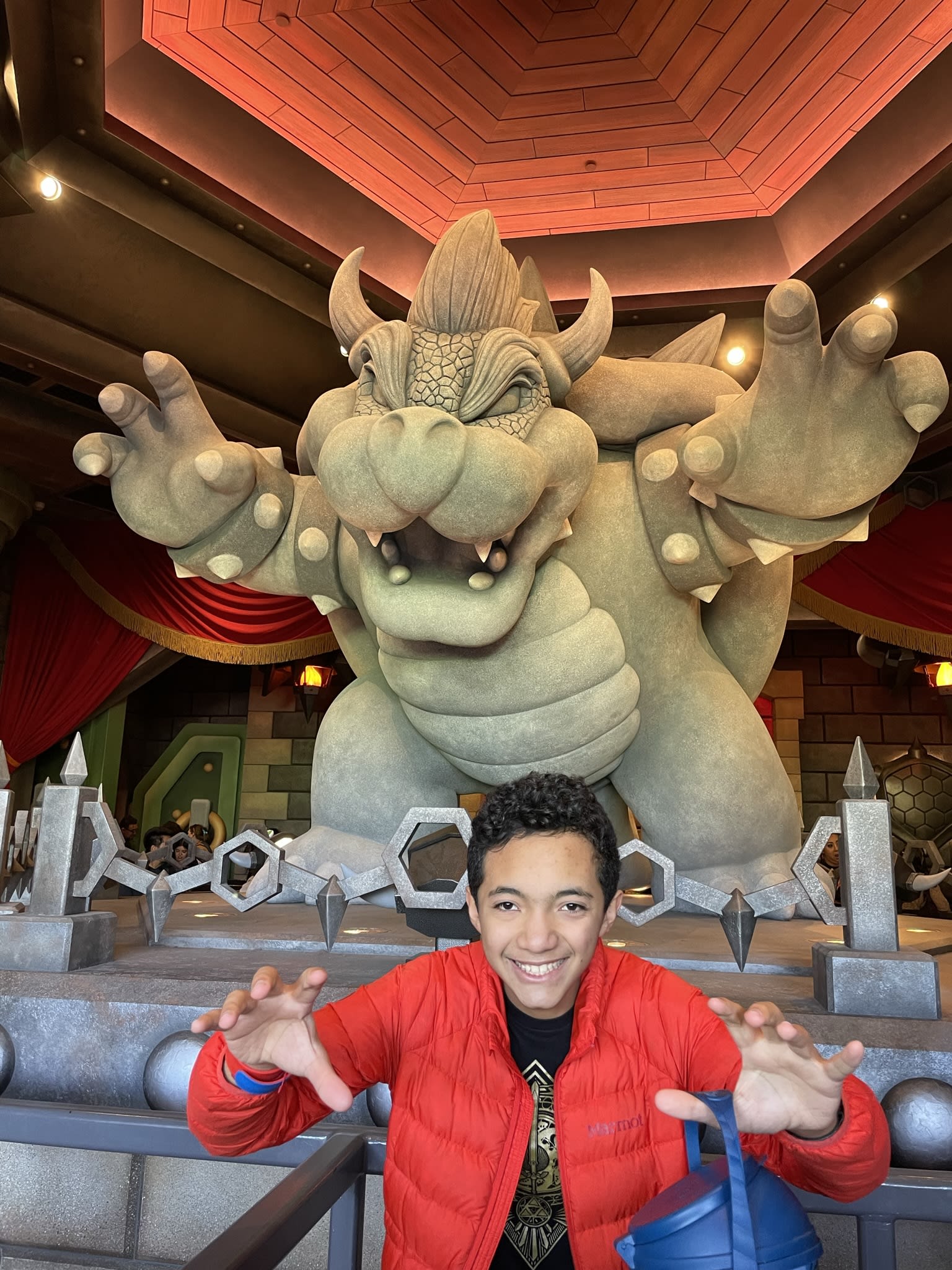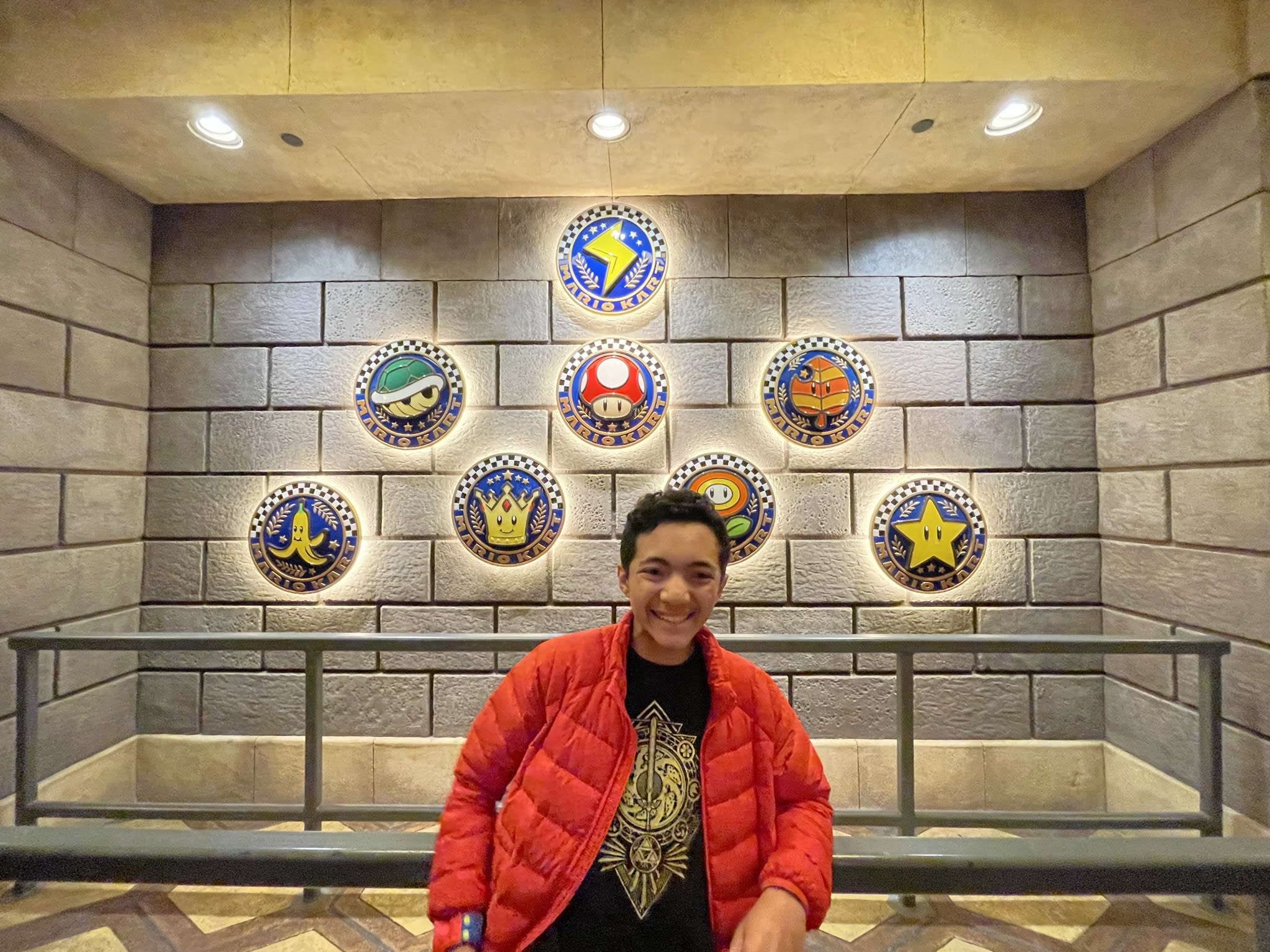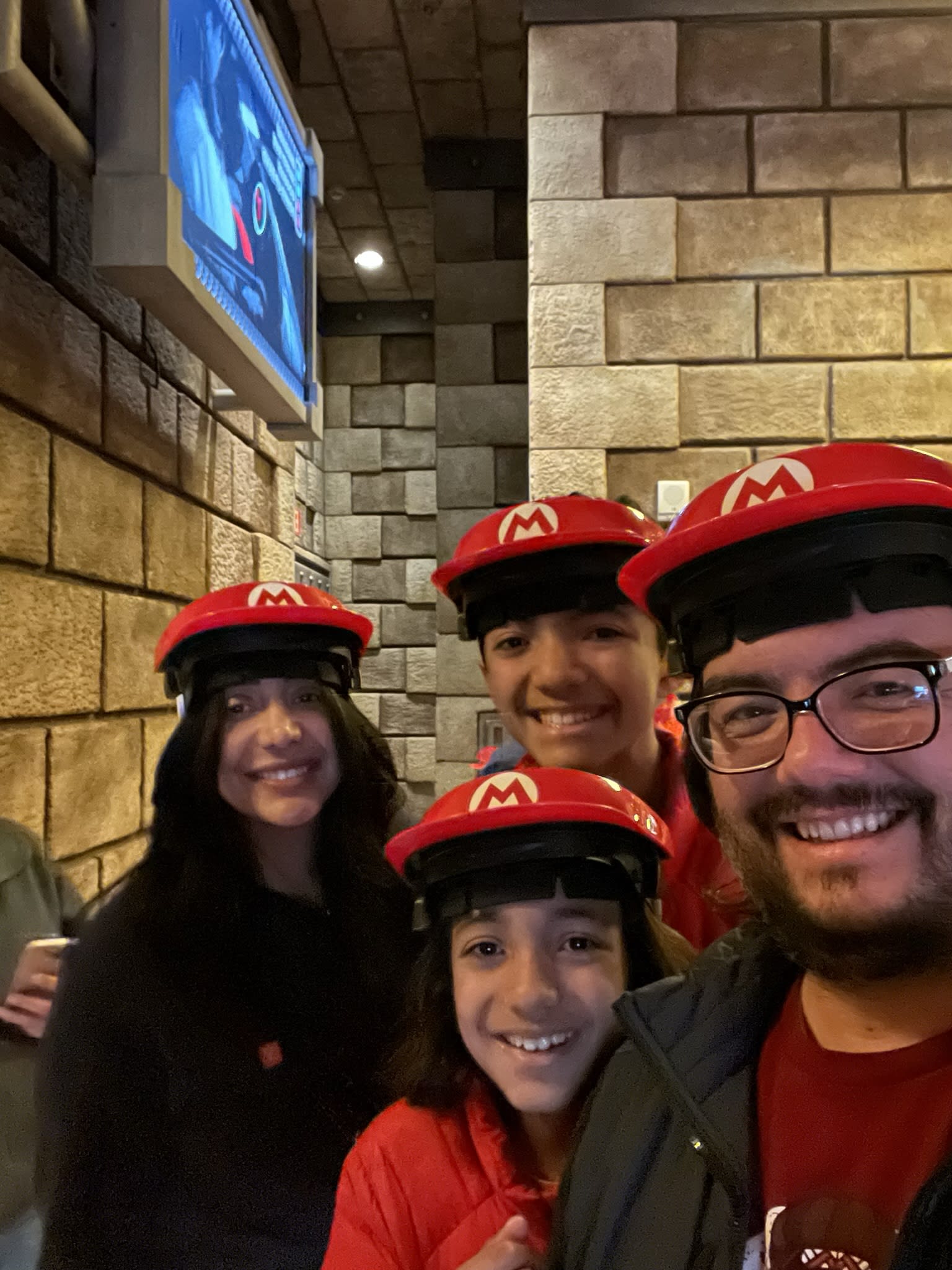 These photos are us waiting in line to ride the Mario Kart ride. Three hours for a 5 minute ride. We made sure to use the bathroom before heading to any lines. We also carried popcorn and drinks with us. The positive side of the long wait is that Jared and I get time to visit with the boys and talk about anything. It is also important to remember when traveling with teenagers that mood swings and hormones are going to try to ruin your vacation. I tried to not take it personal when meltdowns happened.