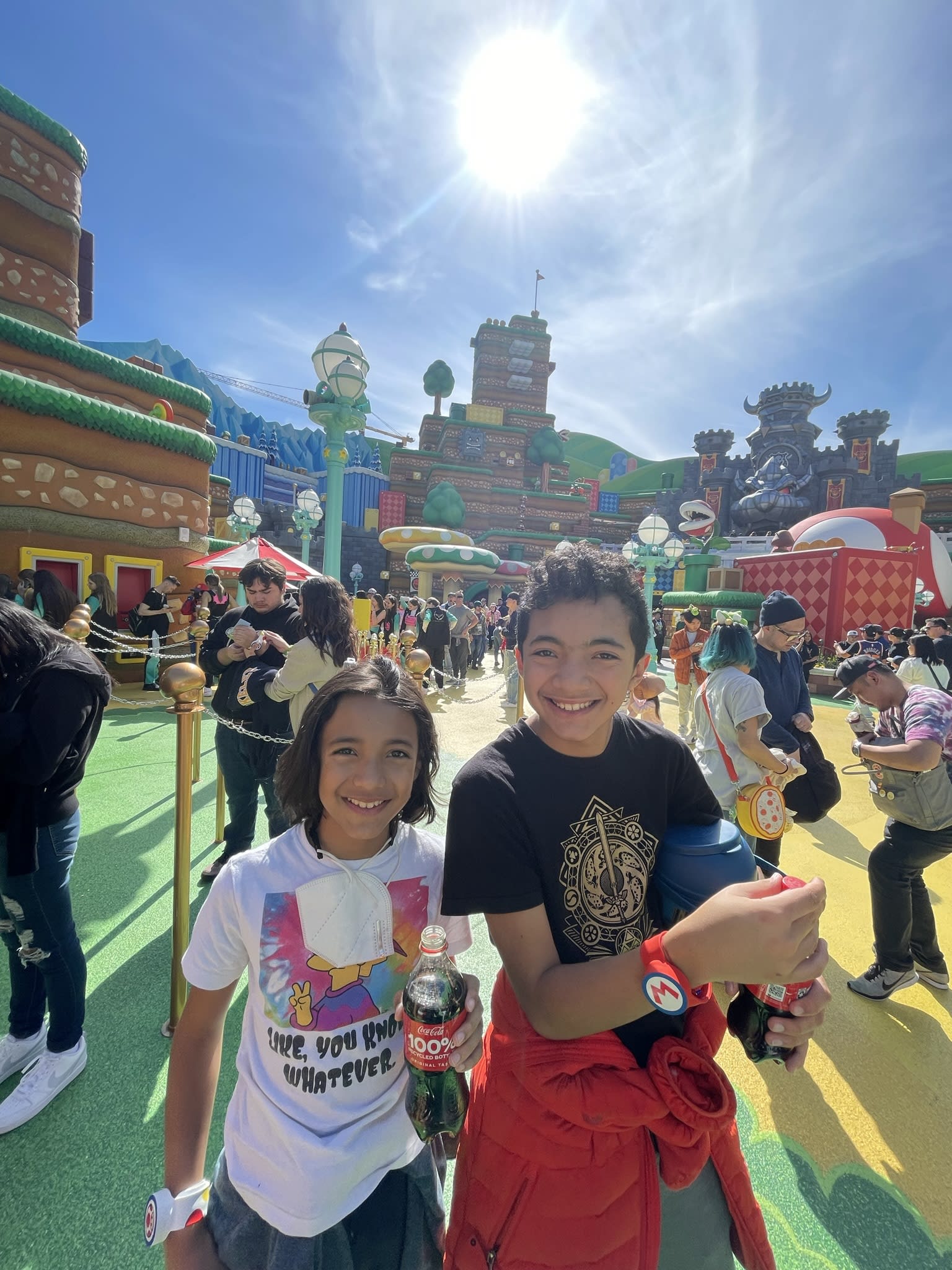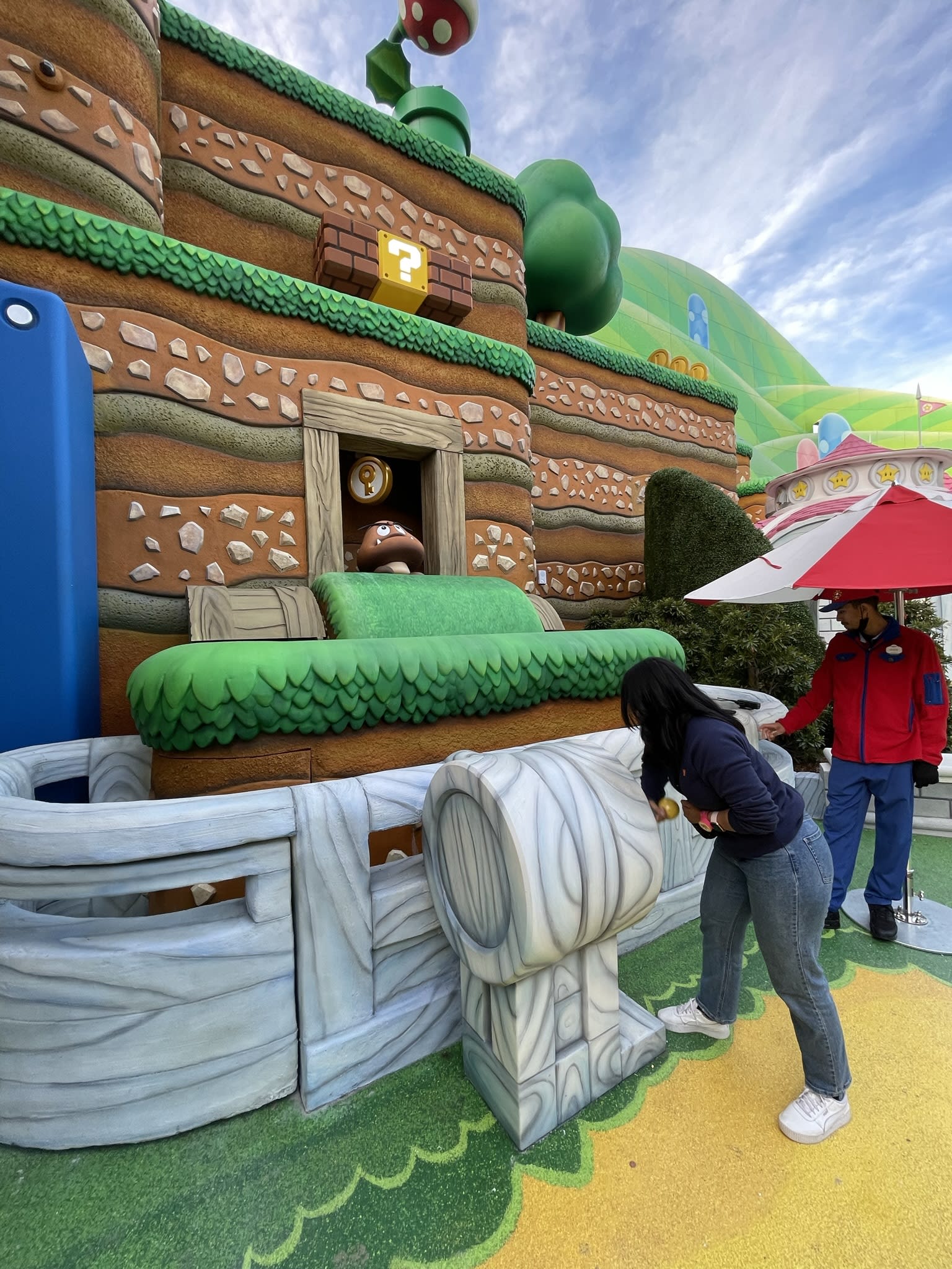 To do the games in Nintendo World, you need these wristbands ($40 each) and a phone to keep track of all your points. To participate in one of the main rides, you need to complete three mini games (which took hours because everyone was doing it). After getting the three keys, we headed to another castle to fight Bowser Junior. It was fun. They only let you go inside if you have three keys which will be stored in your wristband.