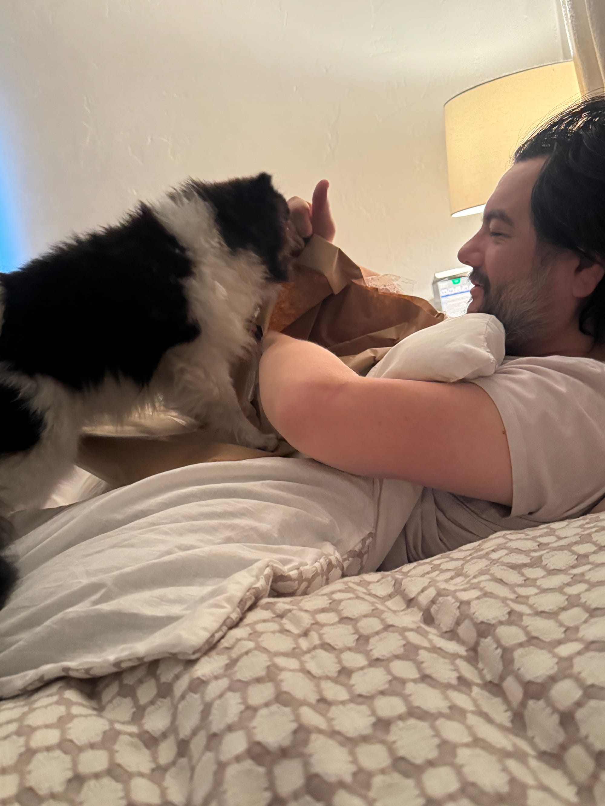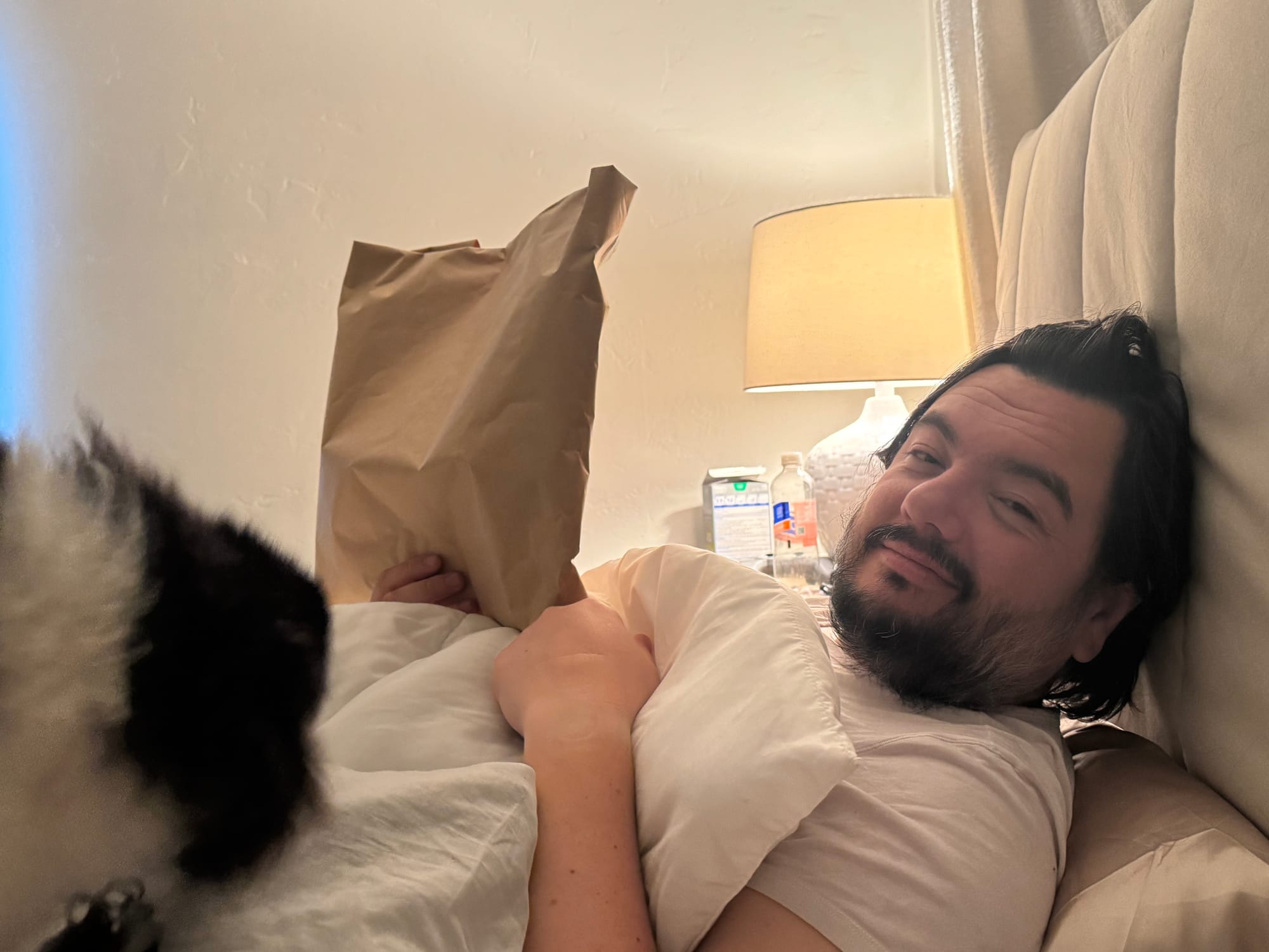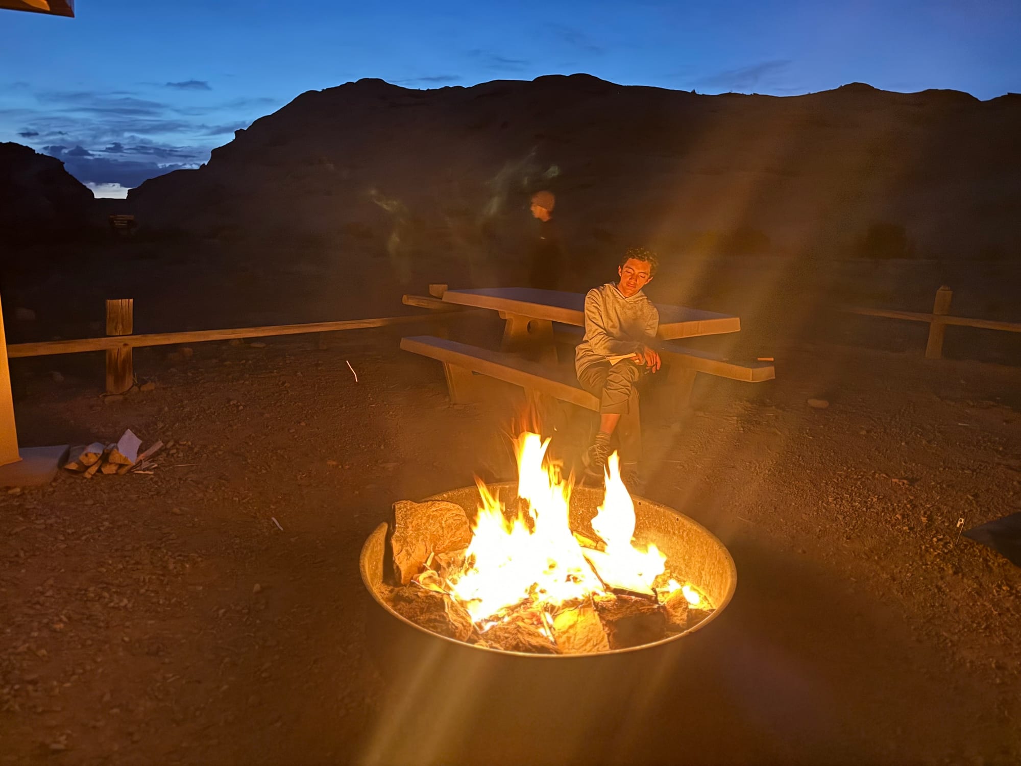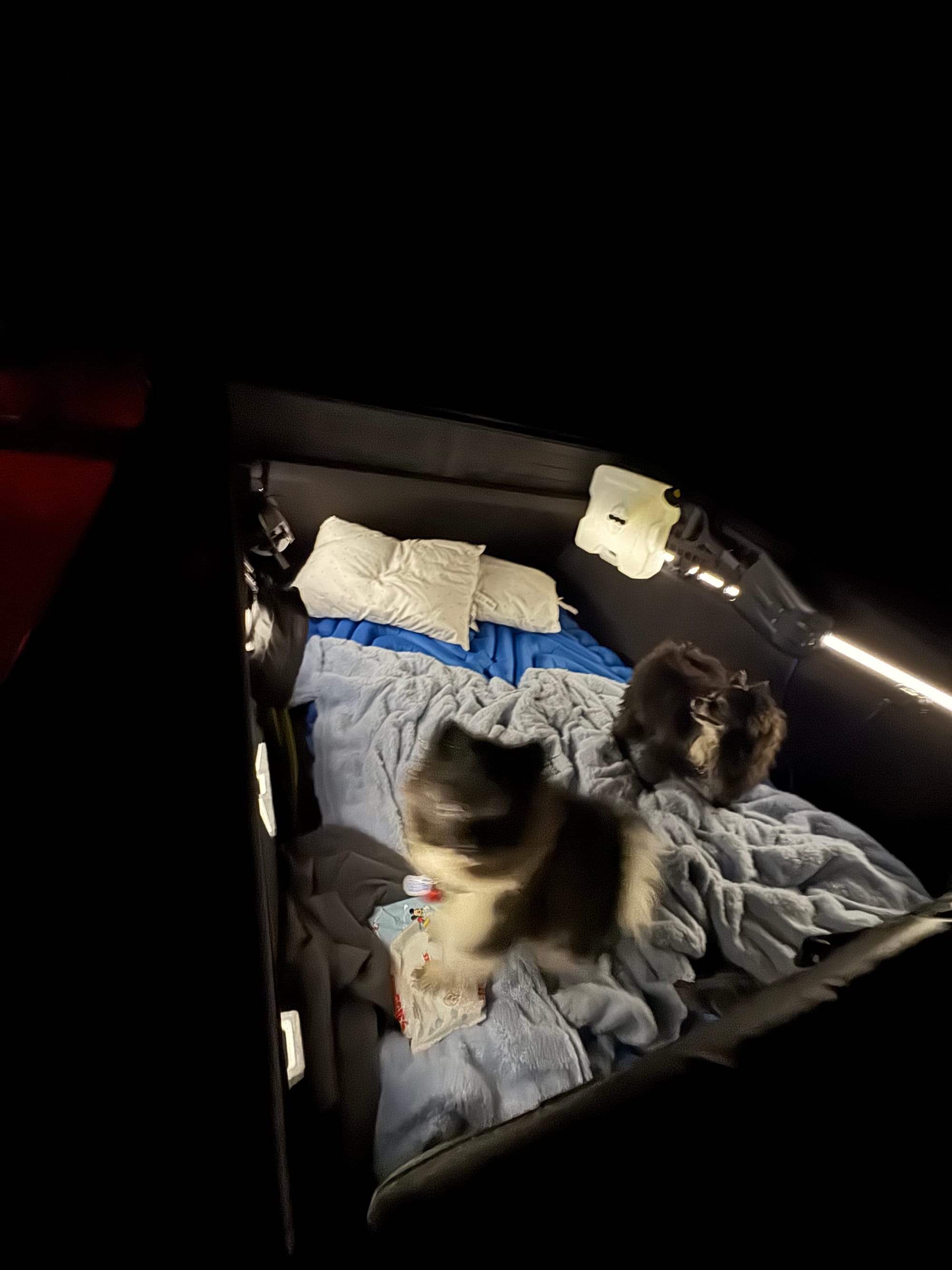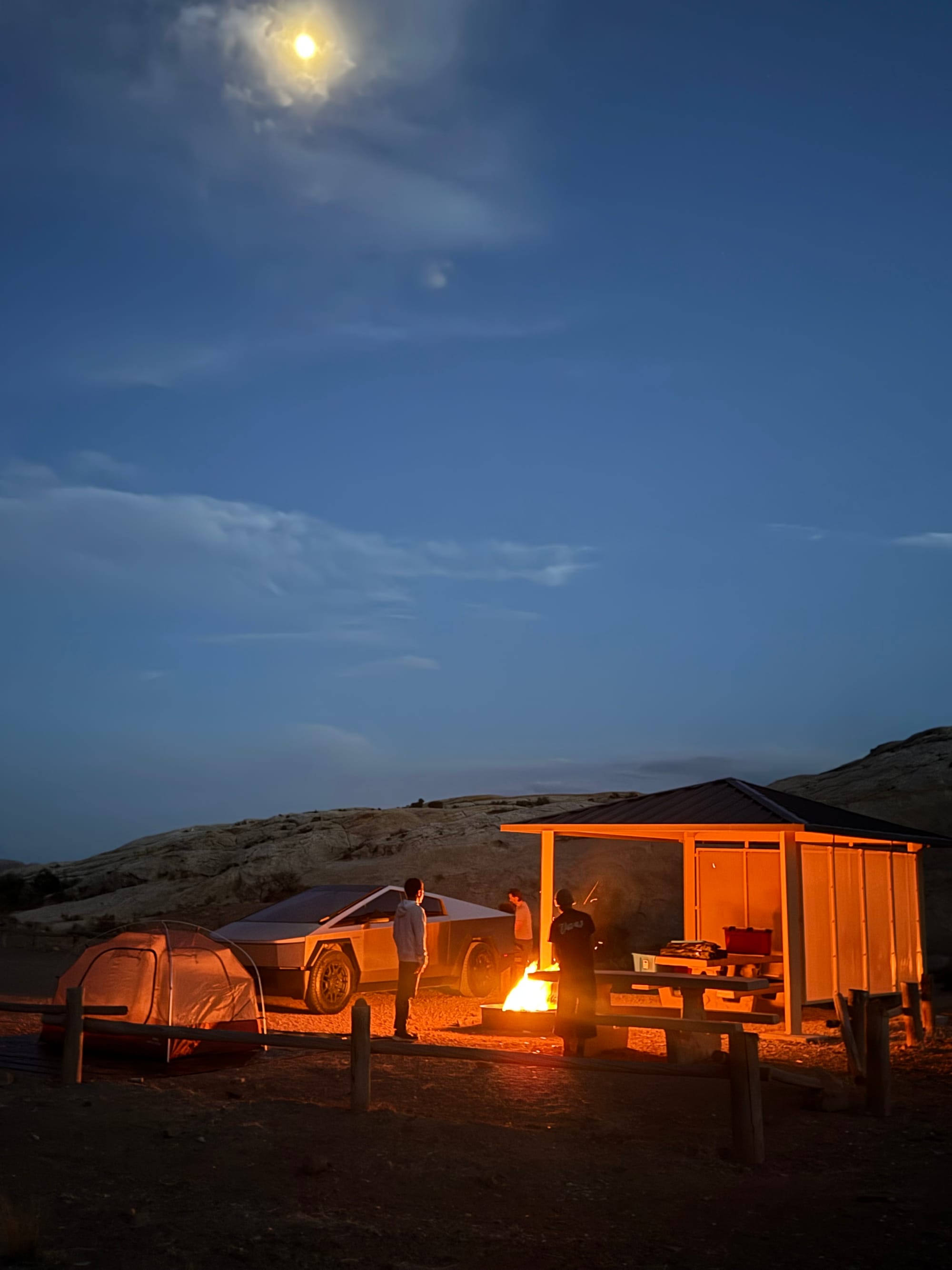 Jared and I slept in the back of the Cybertruck. The moon was so bright, it felt blinding. Bear kept trying to jump out of the truck bed. Camping really isn’t for me—sleeping outside was hard on my body. But I didn’t have to worry about packing food, organizing, cooking, setting up the fire, or cleaning. Jared and the boys took care of everything, which was really nice.