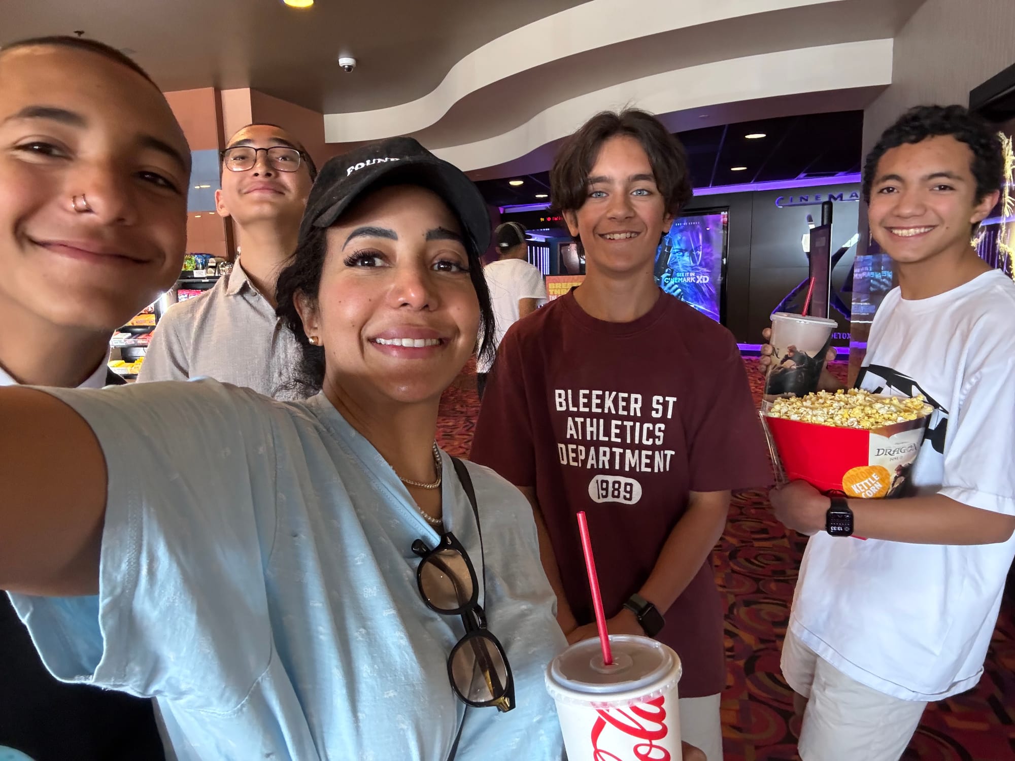 Milo invited me to a movie with his friends... because they needed an adult to come with them to let them in. It was a weird Japanese anime movie. I am the cool mom. I know. Milo and his fake piercing.