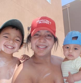 The next day... We have around 4 layers of sunblock on. My children have really sensitive skin like mine. We had so much fun, at the end we were glad to have AC at home because it was super hot outside.