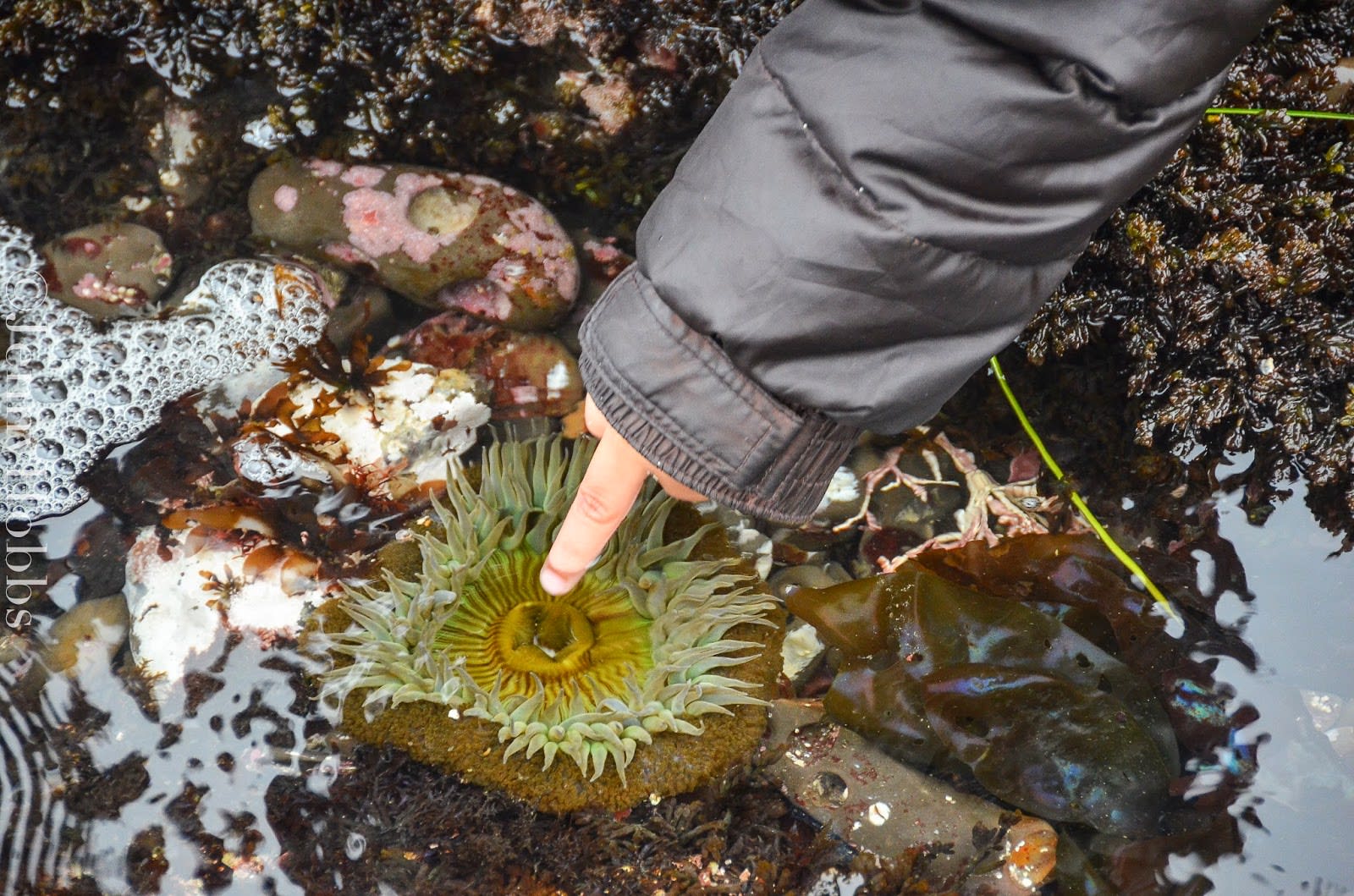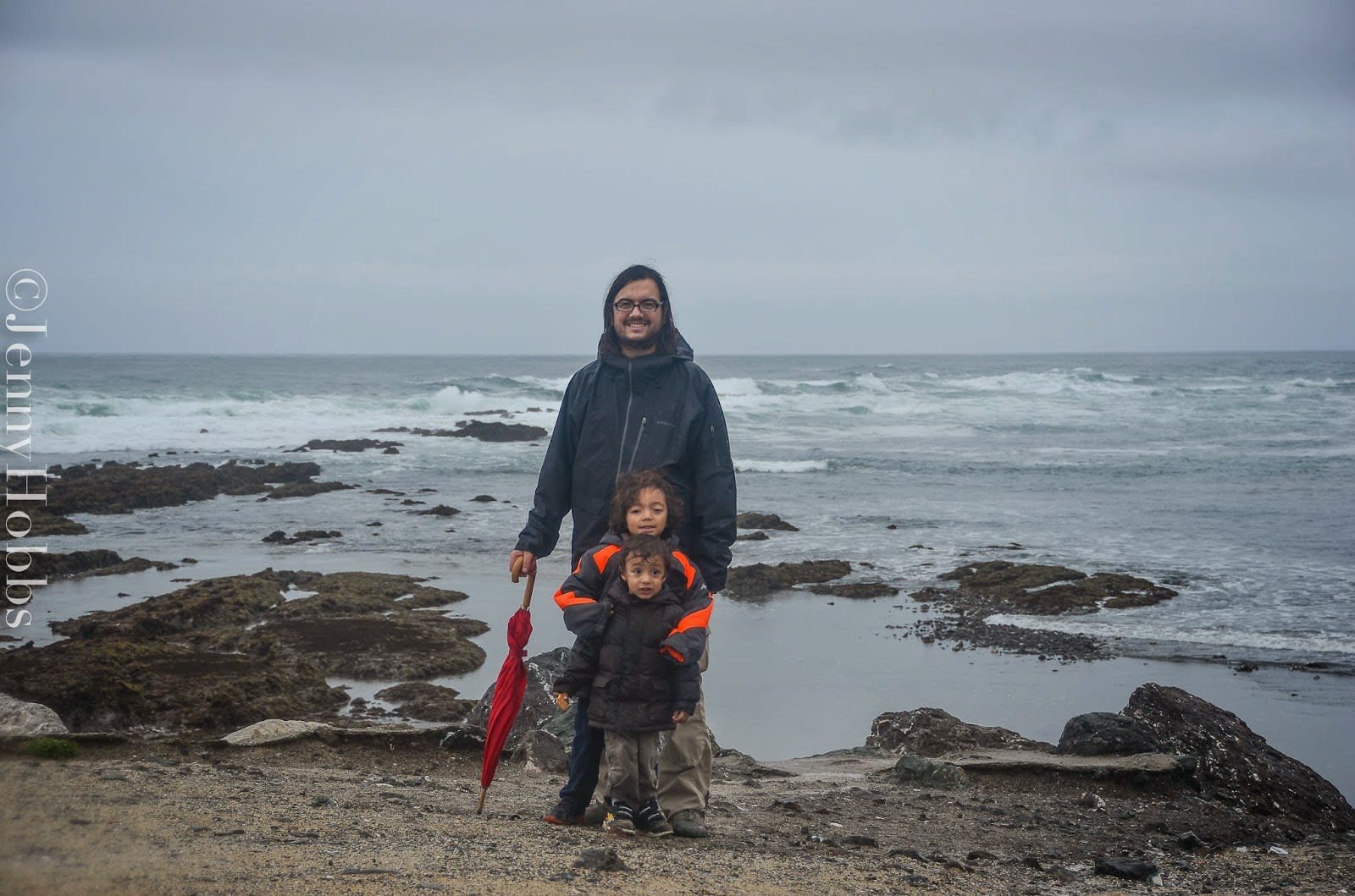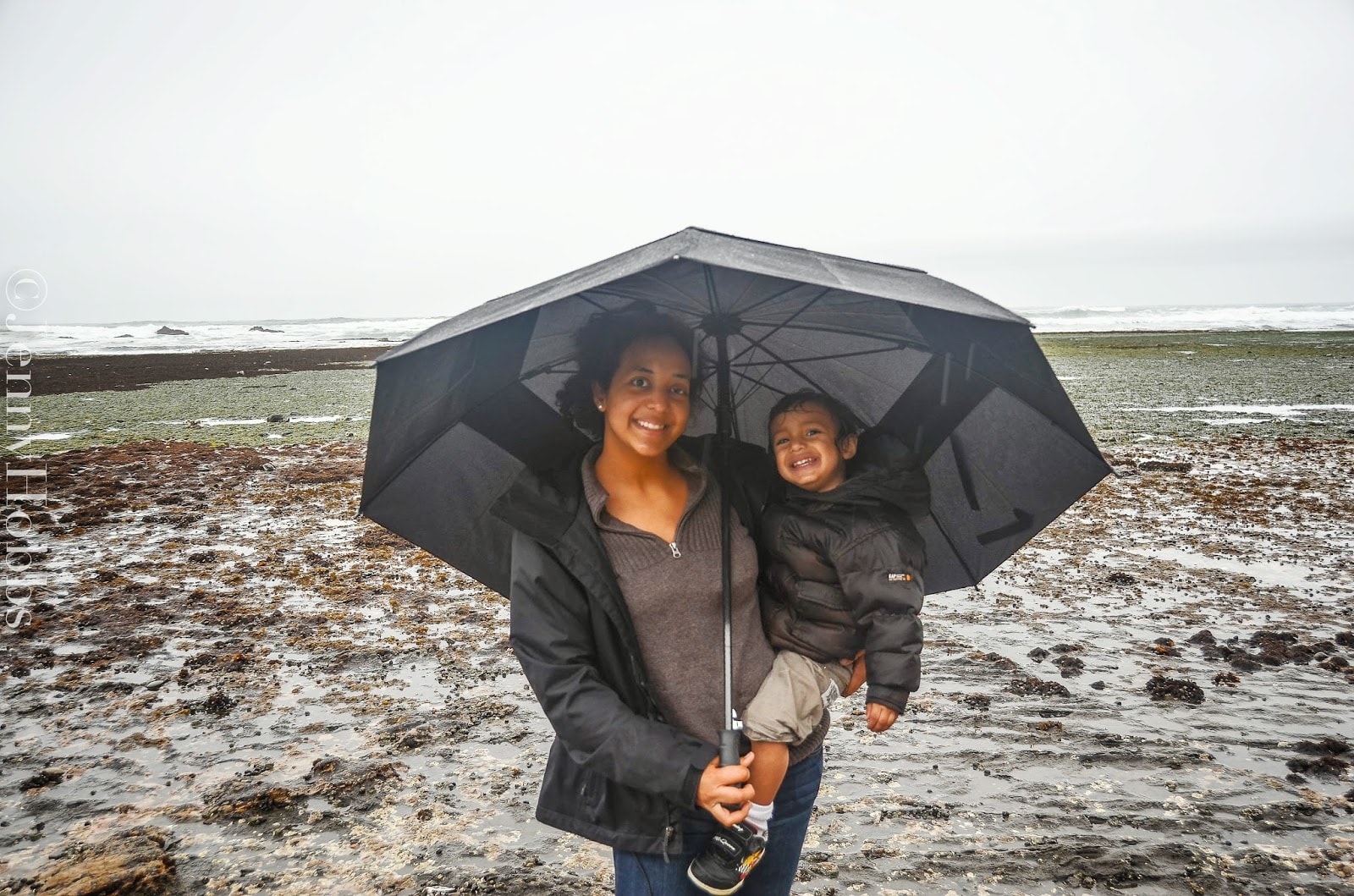 Like I mention before, Mario is learning about tide pools, so Jared surprised us which a trip to Fitzgerald nature reserve at Moss beach so we can see all the wonderful sea creatures. It was raining and the rode was very slickly.
