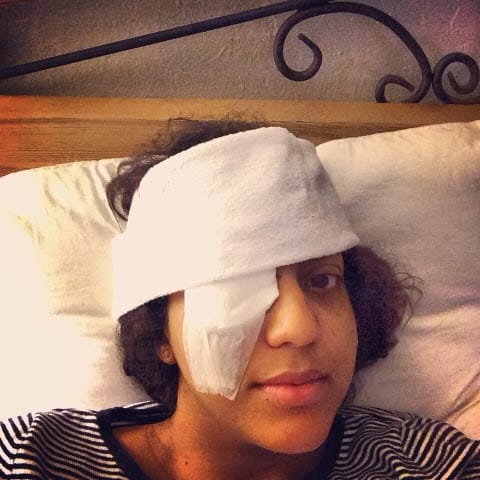 On Thursday I had my eyelid retraction surgery. It went pretty quick. I was so relax and I LOVE the drugs my doctor gave me to relax because I was awake the whole time. I am not in pain, I just look like I was in a car accident.